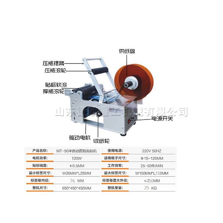 工业外卖圆罐标签粘贴机 半自动饮料瓶贴标机 塑料瓶不干胶粘标机