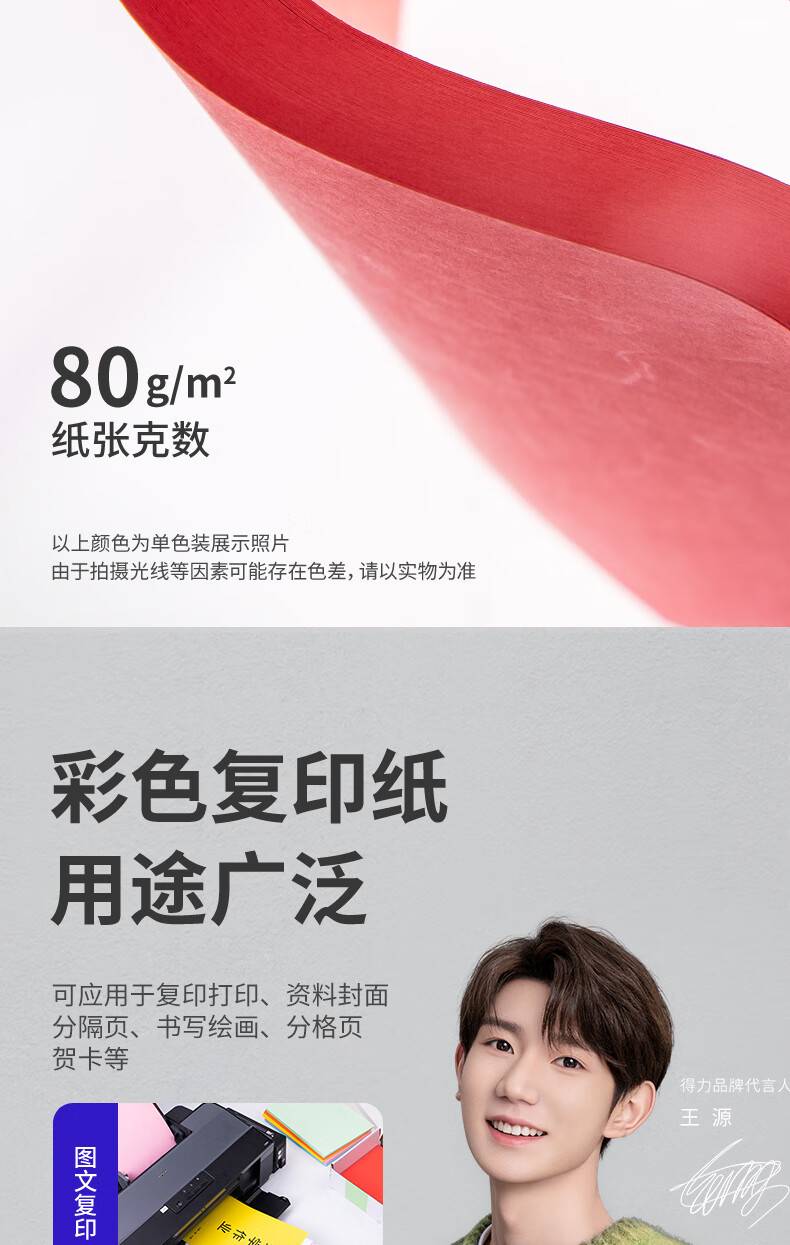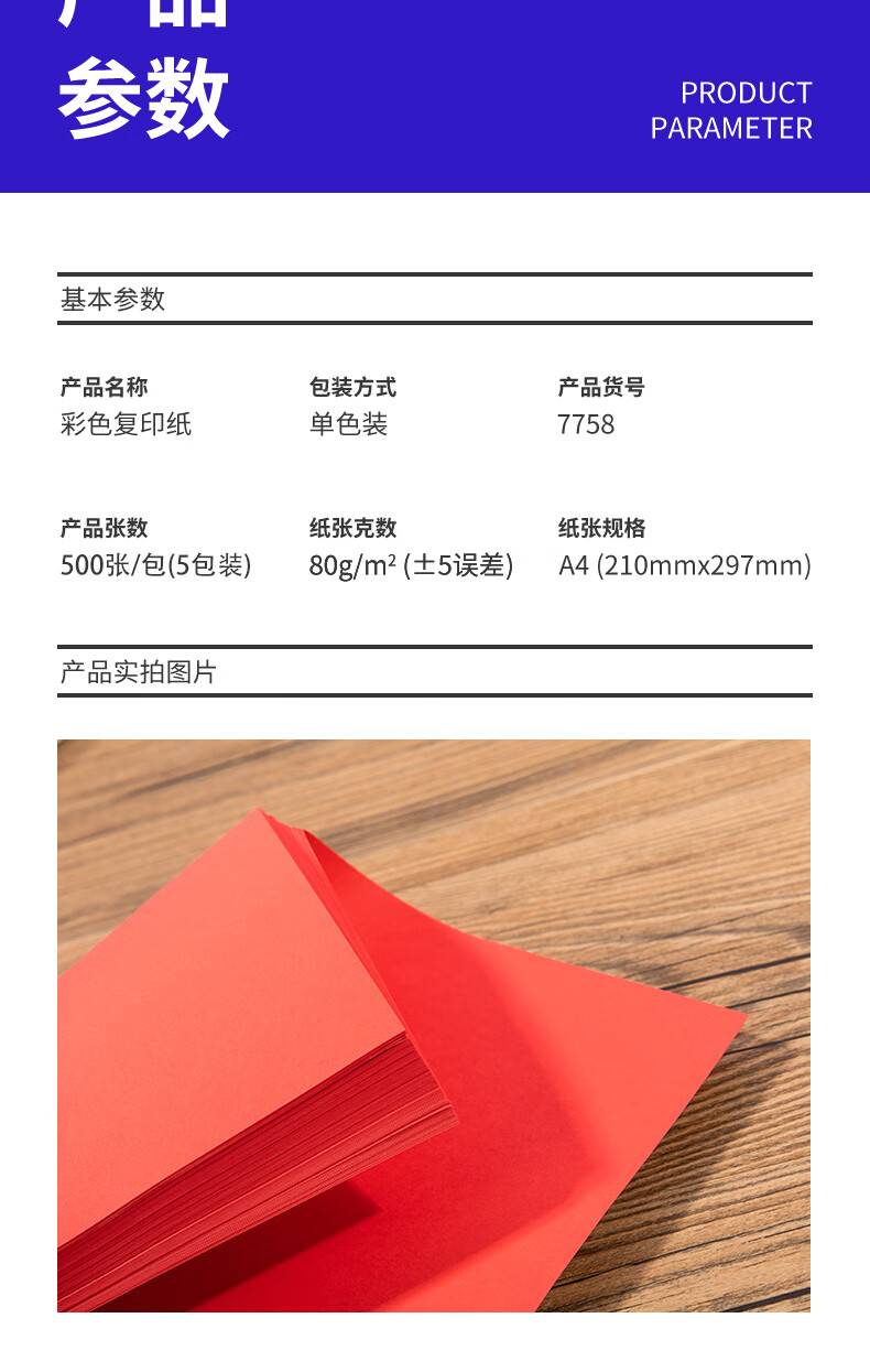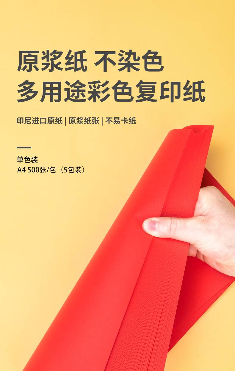 得力(deli)7758 红色彩纸复印纸 彩色儿童手工纸剪纸 打印纸