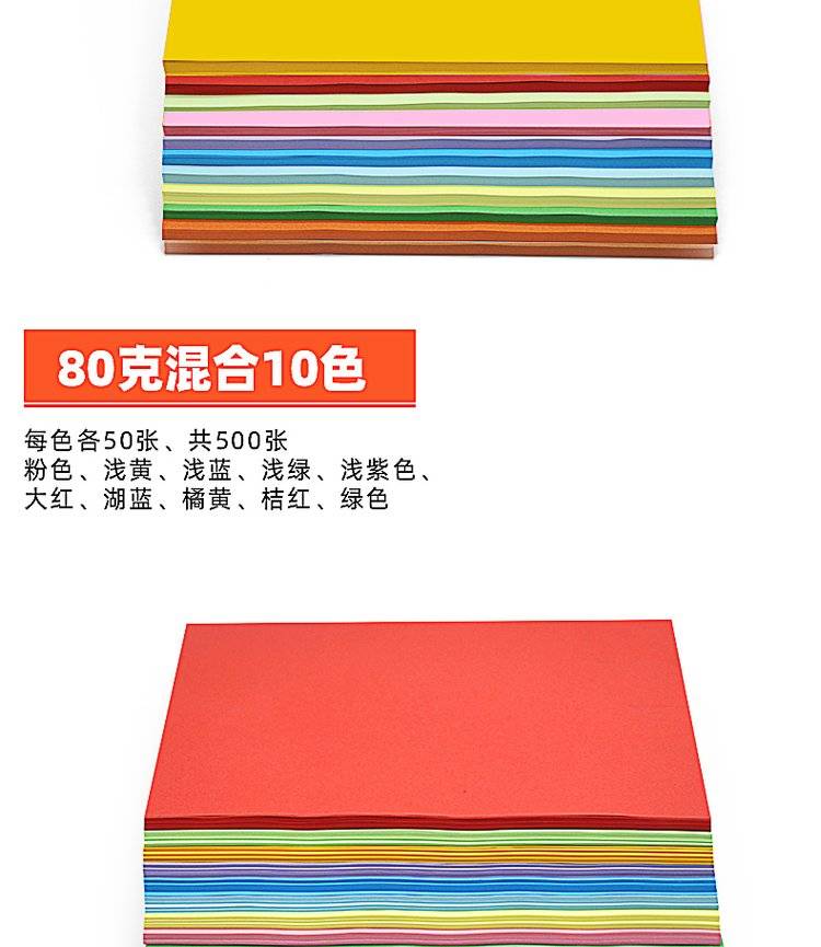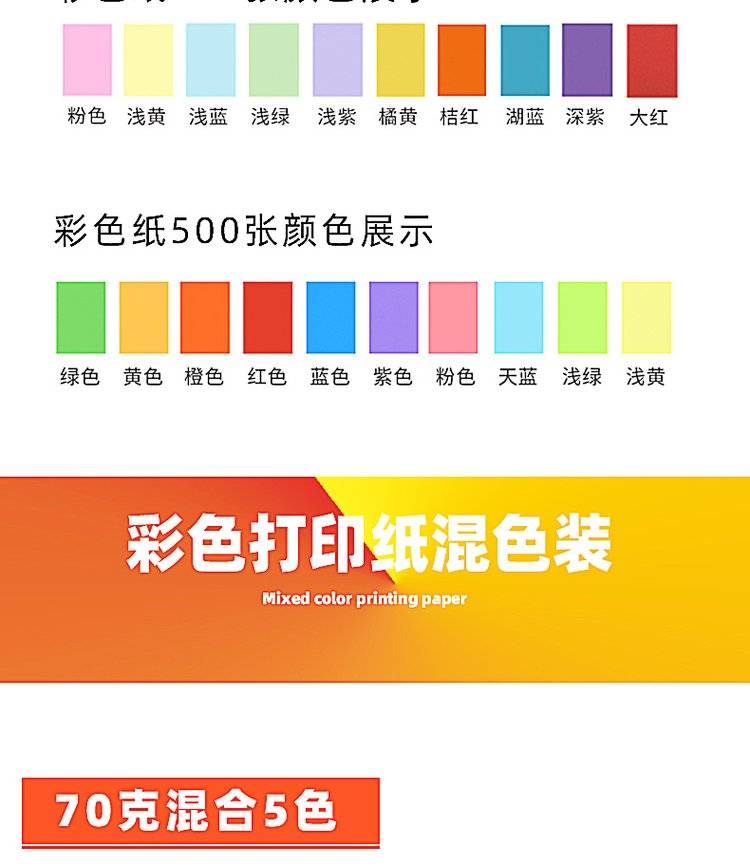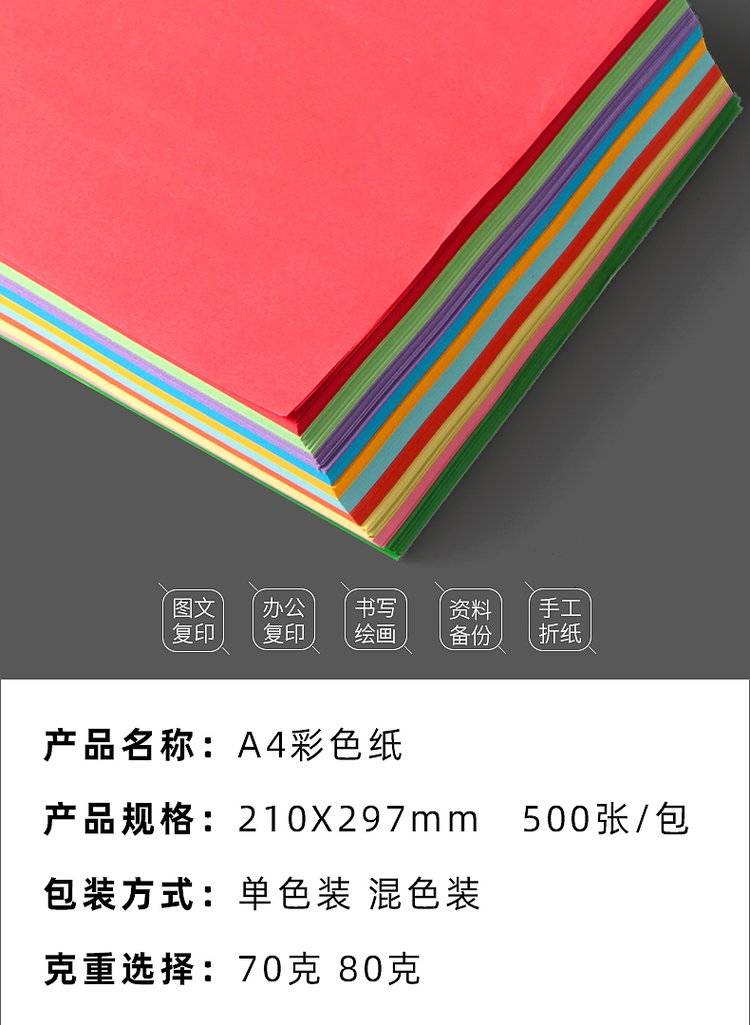 彩色a4纸彩色打印纸混色装70g 80g 彩纸彩色a4复印纸白色复印纸打