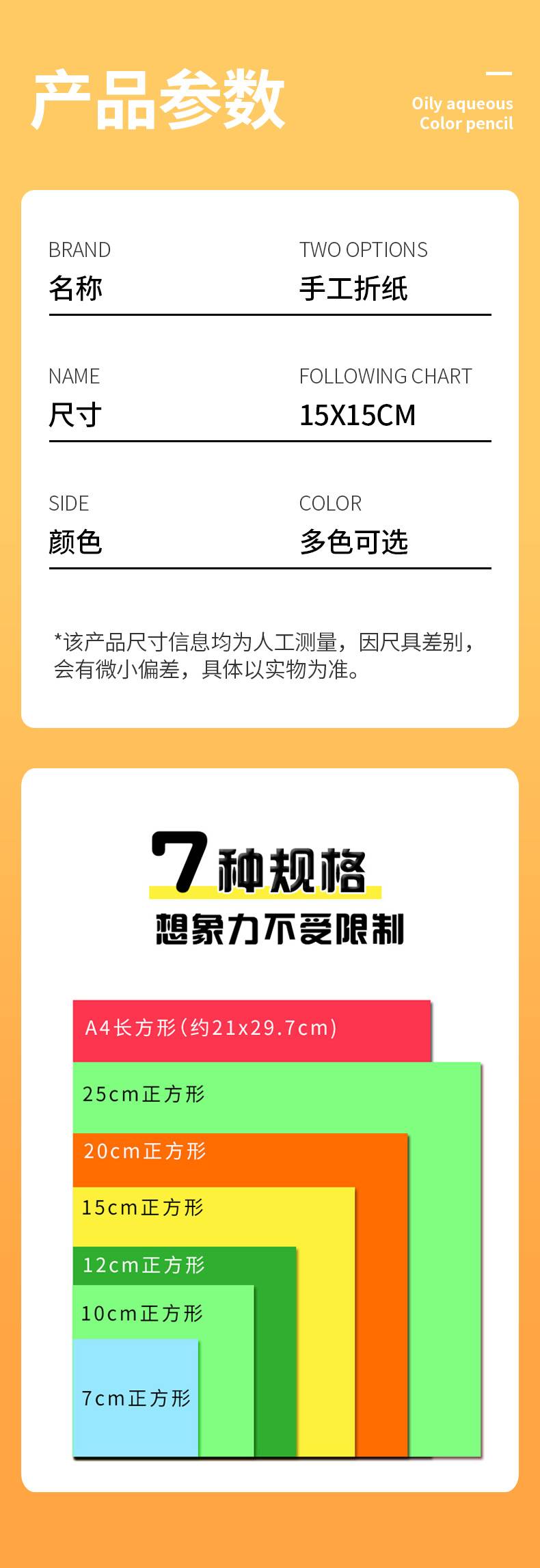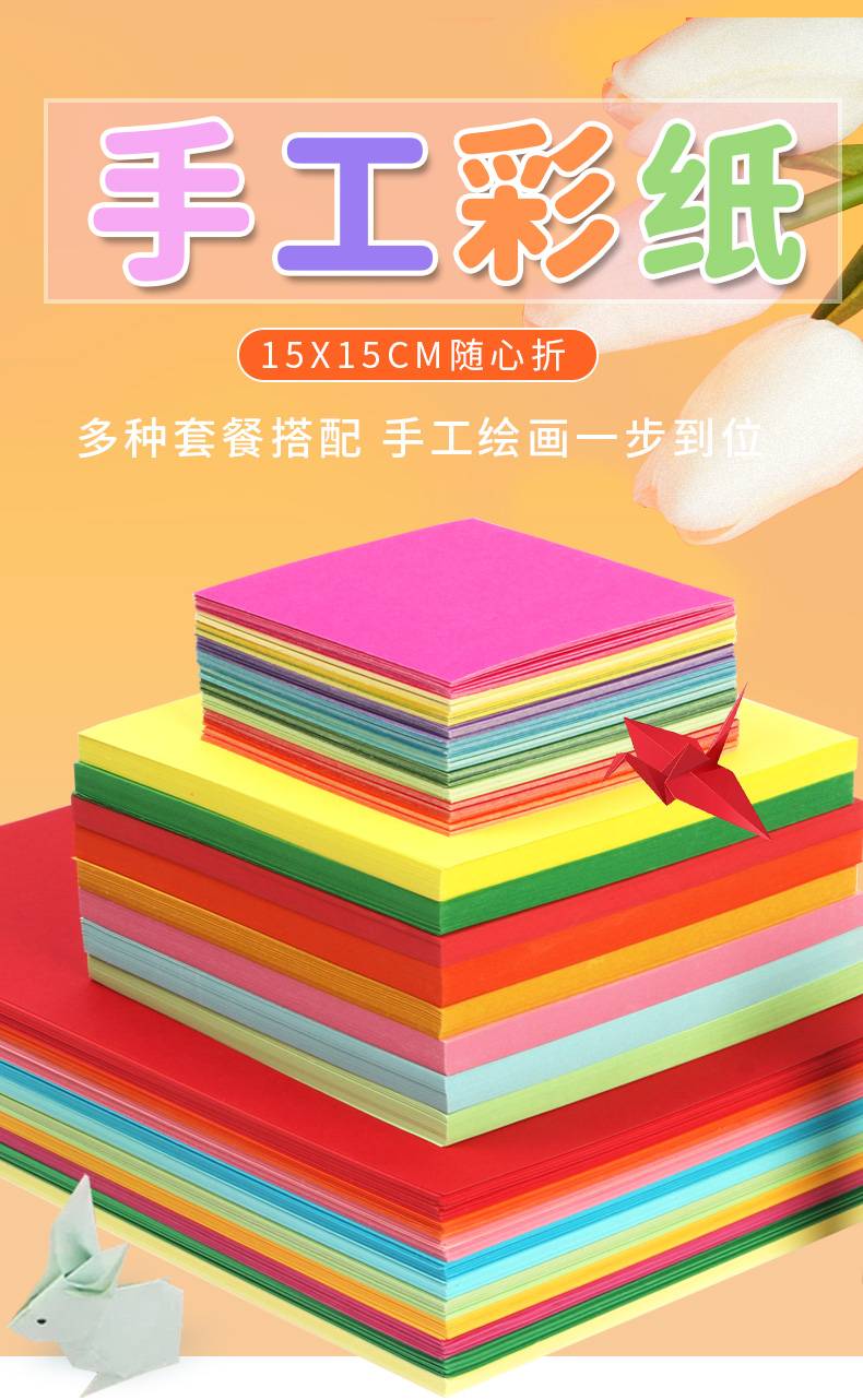 彩色折纸正方形15cm幼儿手工纸单色剪纸儿童手工彩纸多种颜色叠纸