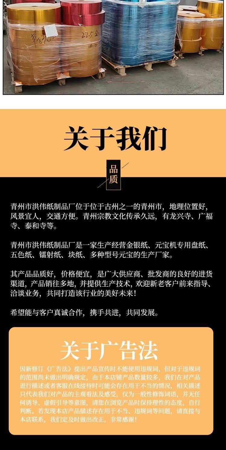 金银纸彩纸 洪伟纸制品 颜色明亮 规格齐全 品质优良