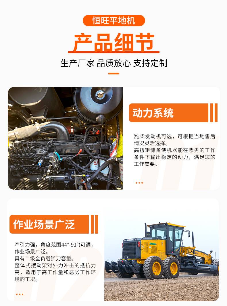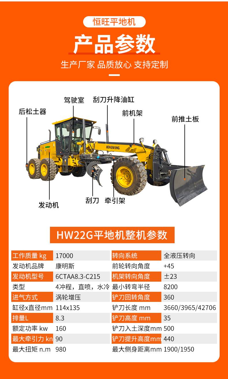 恒旺22自行式平地机座驾路面大型工程土地整平地面挖沟刮坡刮平机