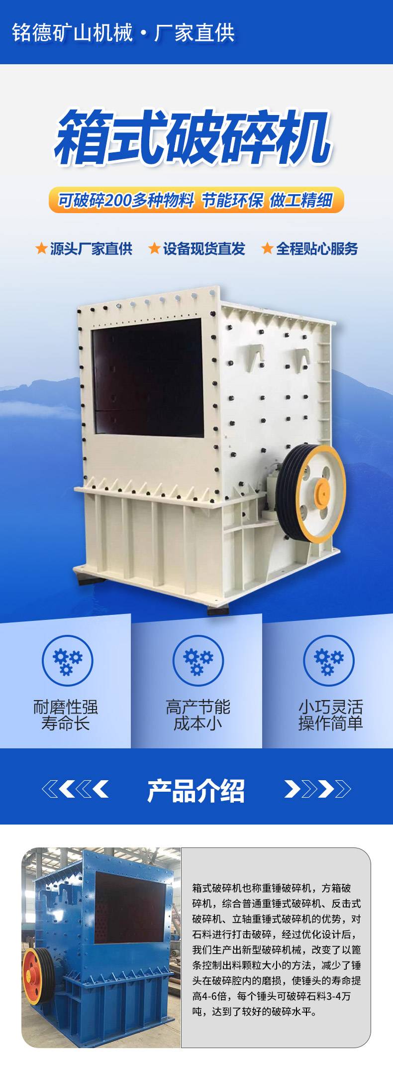 2222铭德机械 运行稳定 操作简单 大块料箱式破碎机 工业级