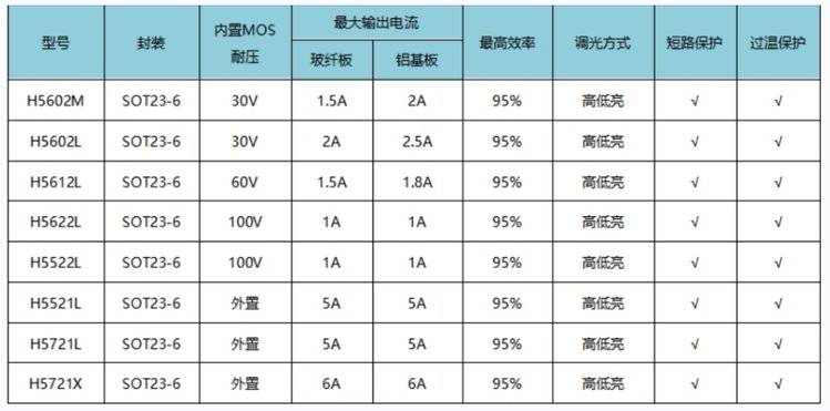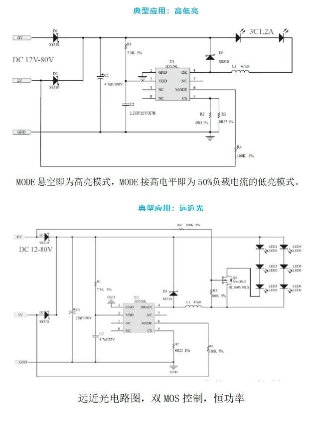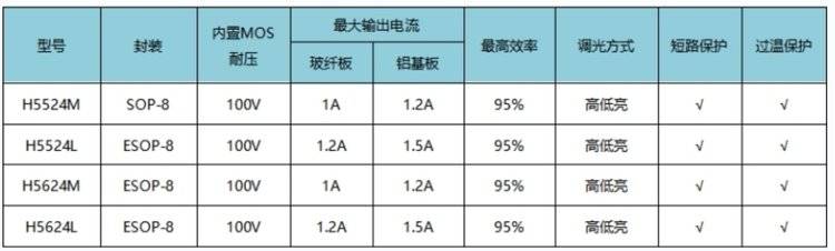 惠海H5524L/H5624L,H5524M/5624M,耐压均为100V,能完美适配日行灯以及尾灯的12-80V的宽电压输入,是低成本,高性价比的首选方案。