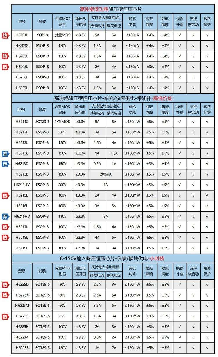 另外,我司也有其他封装类型和外置MOS的芯片选型方案,具体如下: