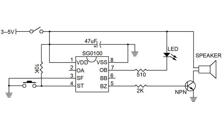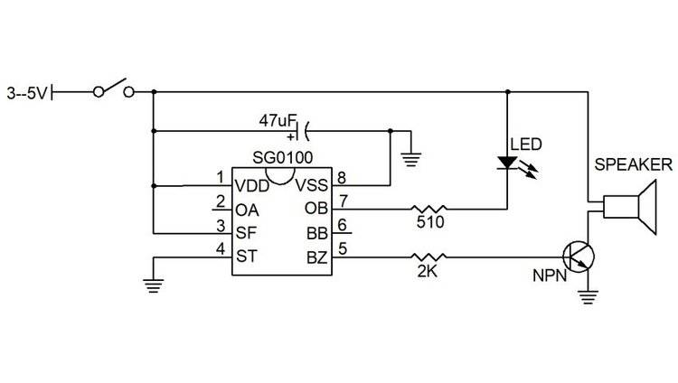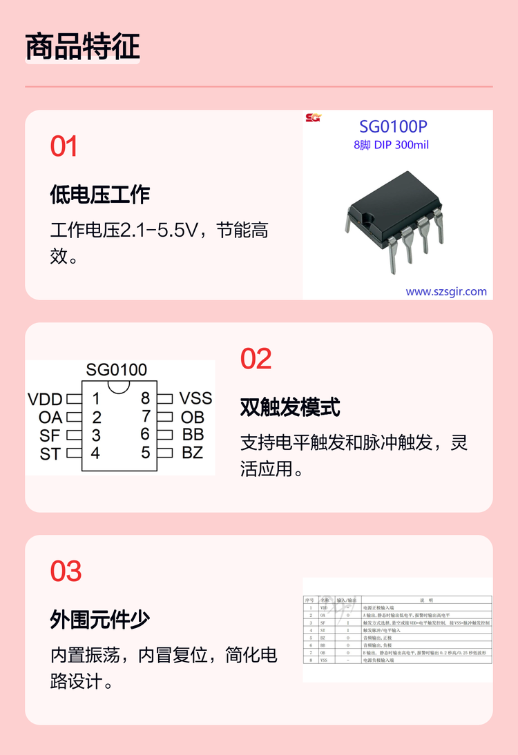 一音报警IC 带闪灯 可电平触发 可脉冲触发 SG0100 DIP8