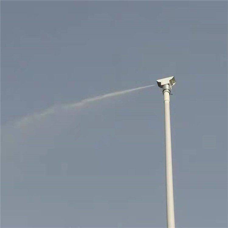 该系统覆盖范围广,一台主机可以带多个设备,间歇性工作,整个过程自动化进行,无需人工,比传统的除尘雾炮车、洒水车要方便的多,可以代替其进行道路或者厂区的降尘除霾清洁等作业。每个高空喷淋点采用高压旋转喷头,降尘降霾水粒扩散度有效射程≥30米(直径),与邻近喷射点组合成大型水颗粒帷幕,喷洒距离可达50米范围左右。每个点可独立控制,喷雾器喷枪可实现0°-360°任意角度旋转,喷射强度可调节,感觉不到水淋,每小时喷射5分钟就能明显降尘,百米高空可净化百万立方米空气,是传统降尘降霾设备效率的3倍。
