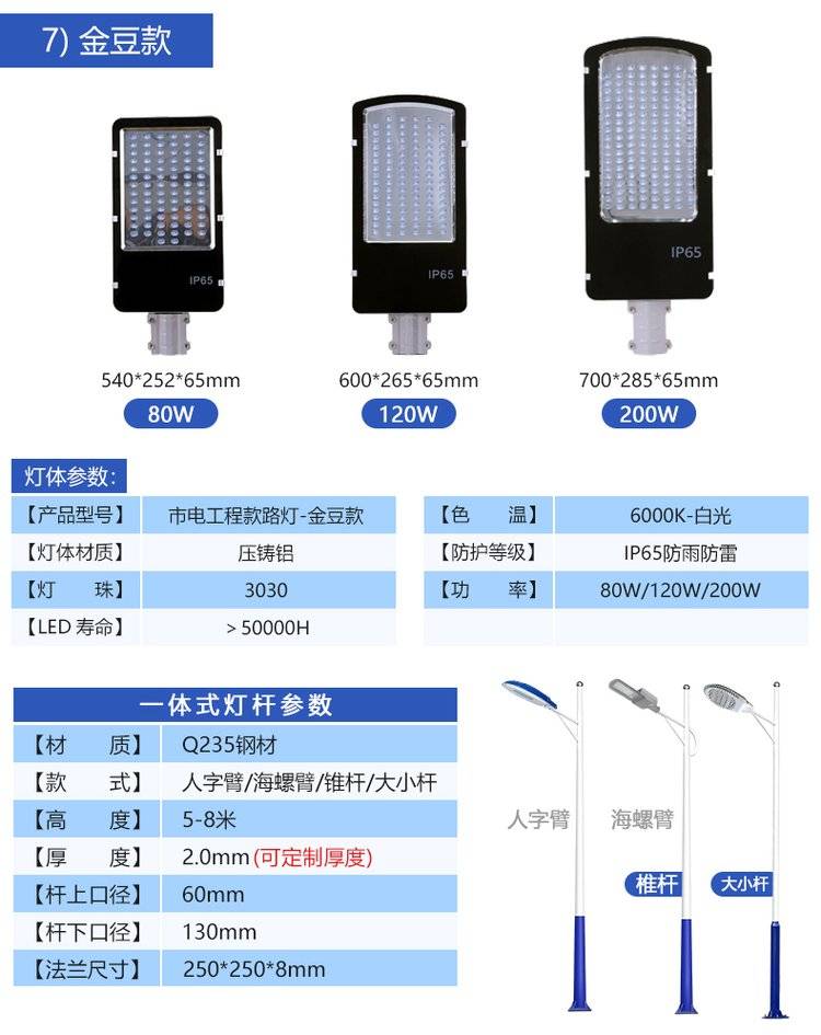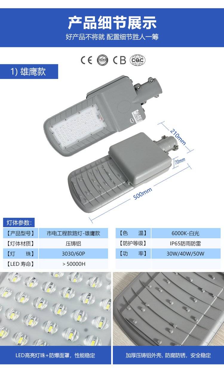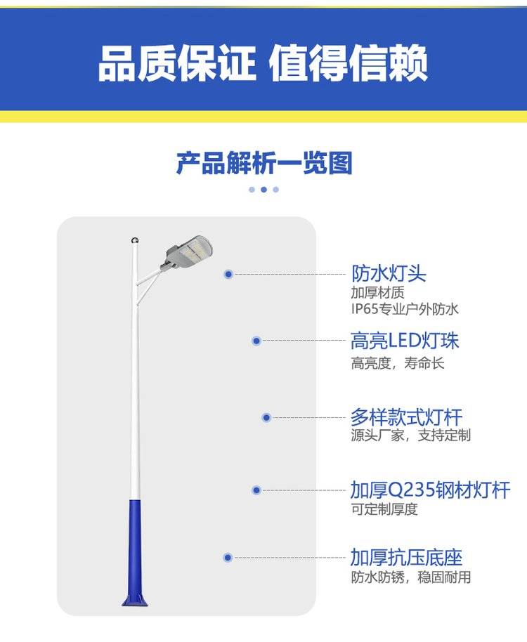 防水LED挑臂道路灯 6米灯杆路灯头生产厂家批发