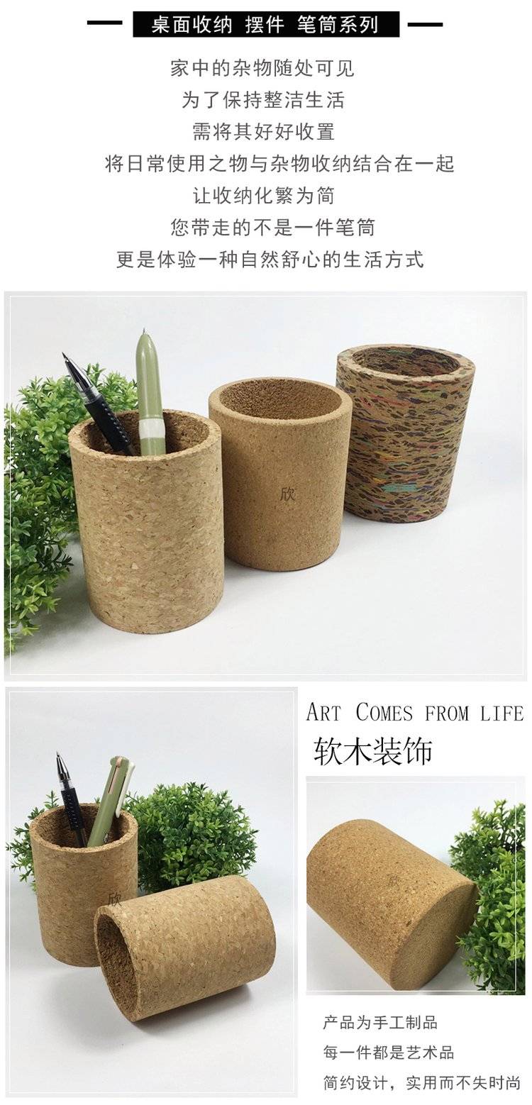 简约软木笔筒 大容量办公室收纳笔盒笔架 多功能装 放笔收纳筒