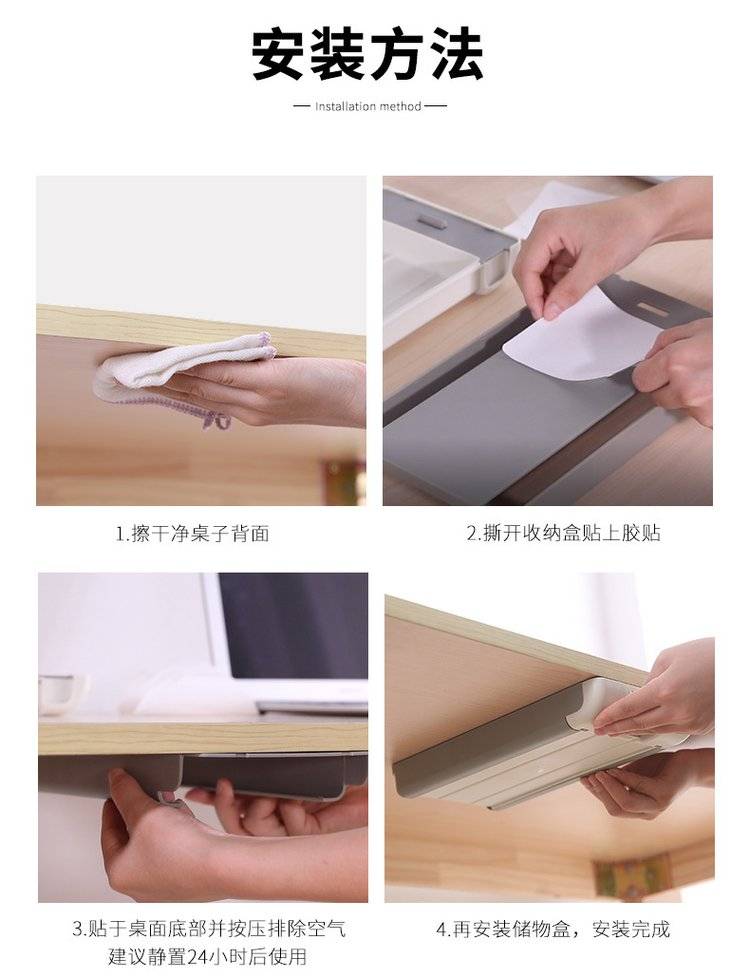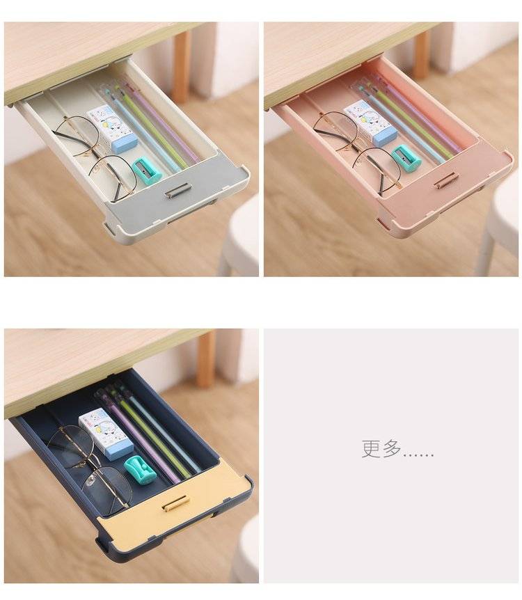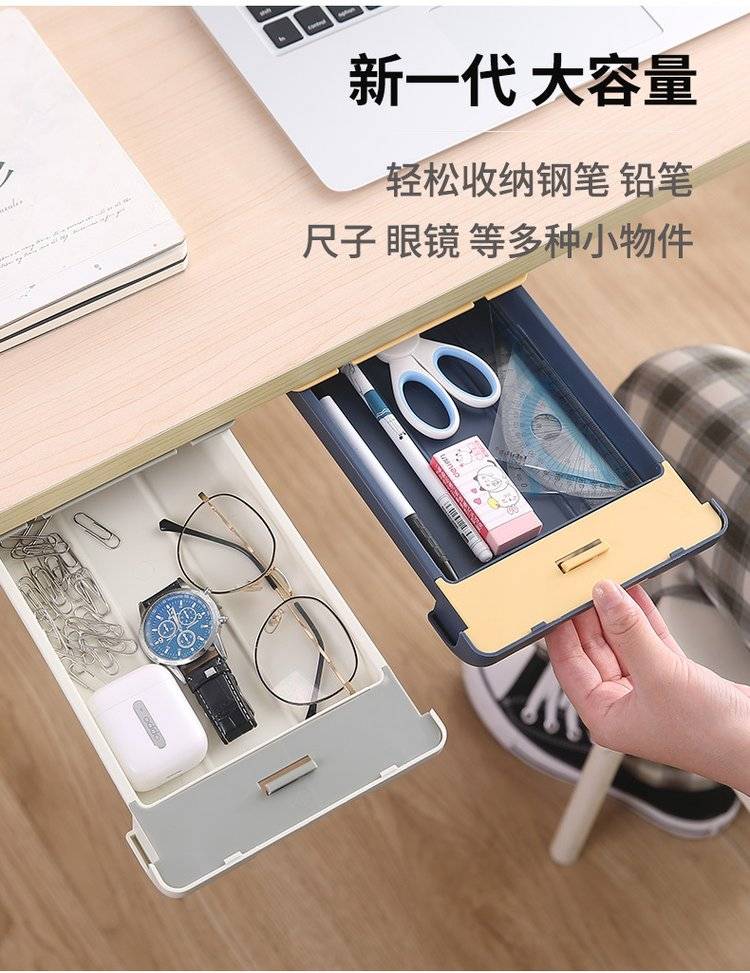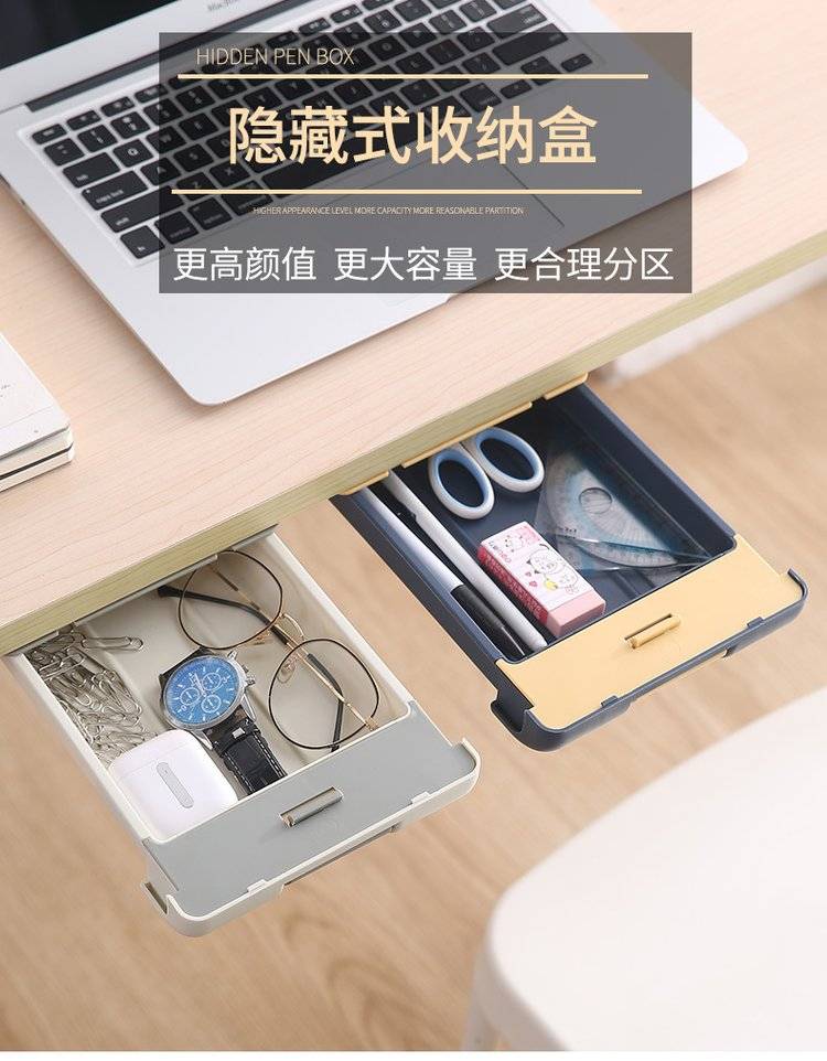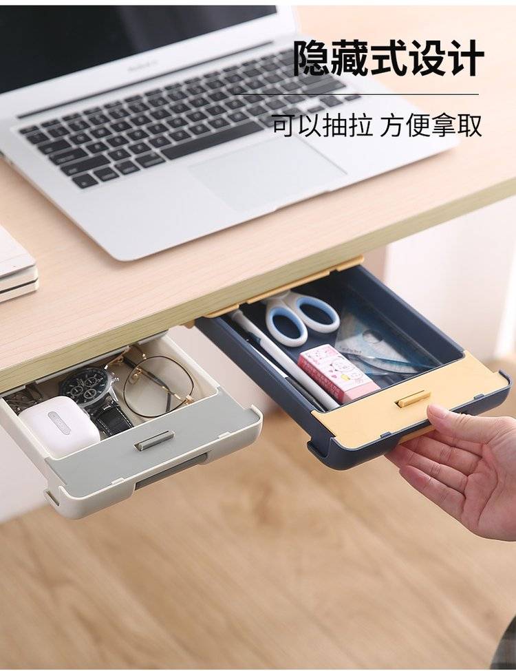 桌下抽屉式整理盒办公室桌面隐藏收纳盒粘贴桌底杂物盒学生文具盒