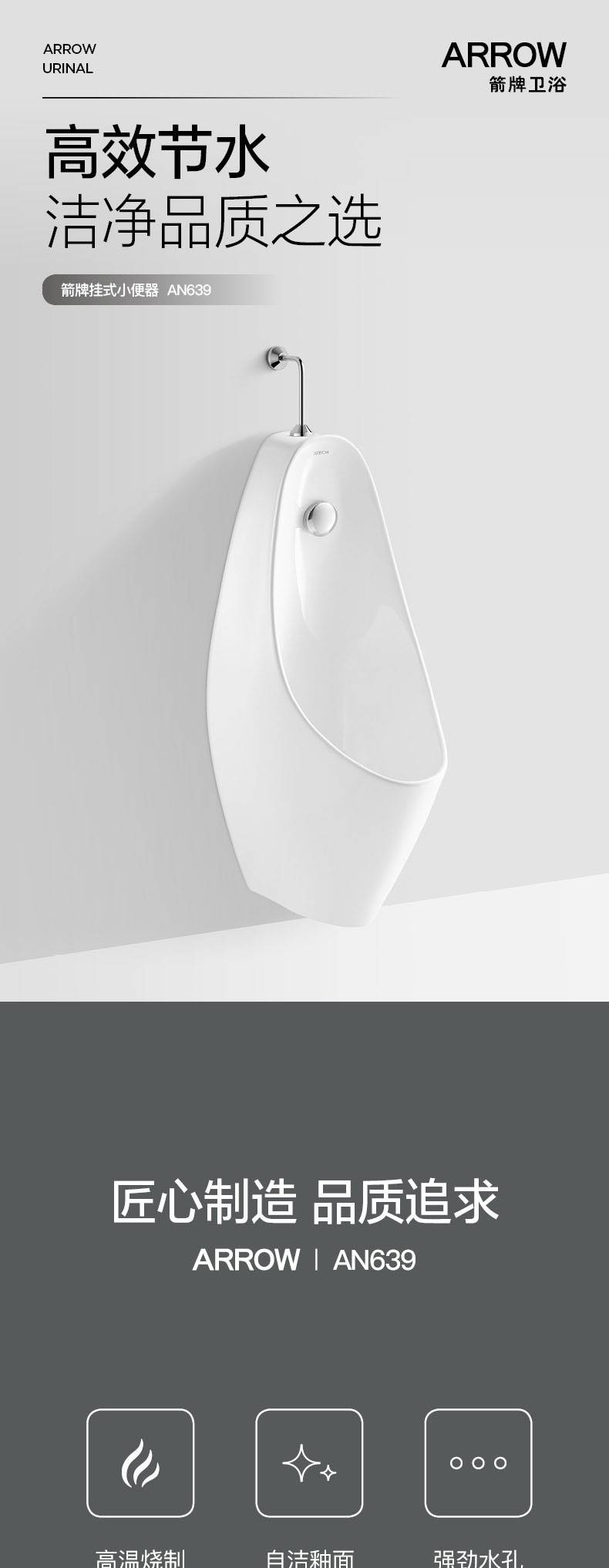 卫生间 挂墙式男士小便池家用陶瓷落地小便斗 自动感应小便器 AN639