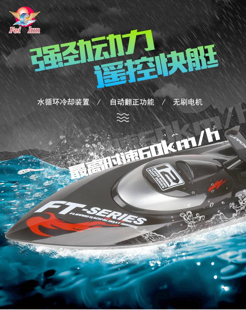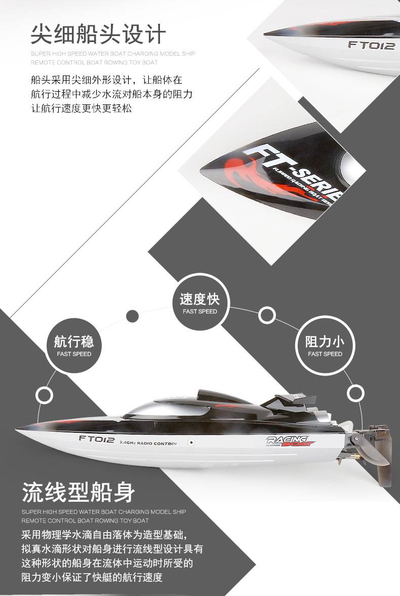 大号无刷遥控船FT011全比例高速快艇 水上遥控防水竞技模型船玩具