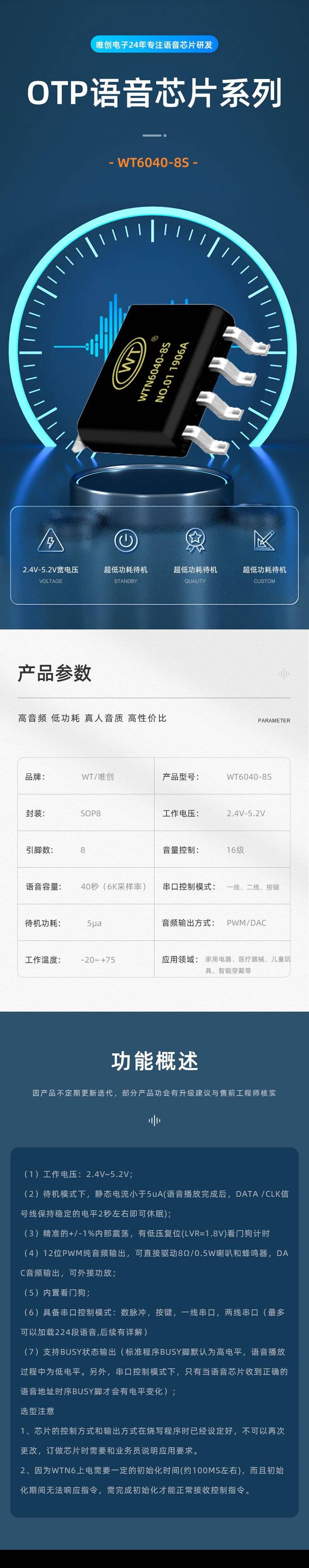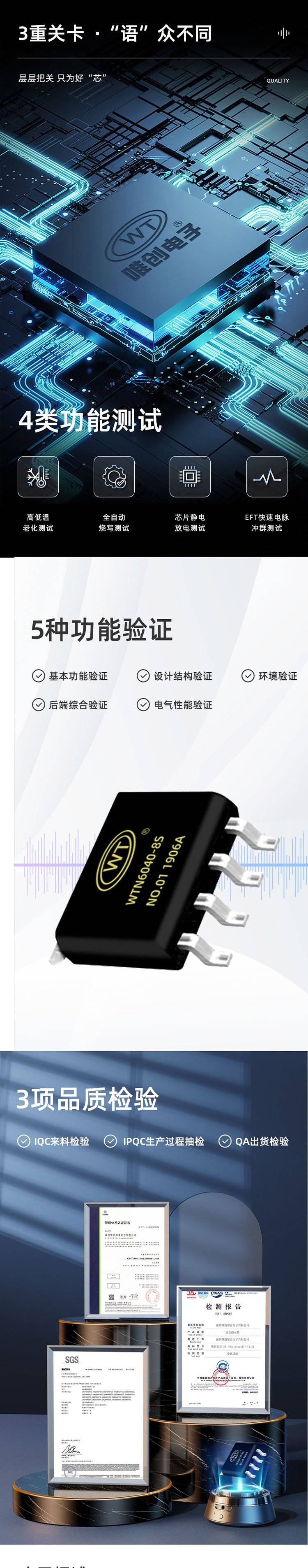 智能门铃语音芯片 唯创电子 WT6040-8S otp语音播放IC 支持定制