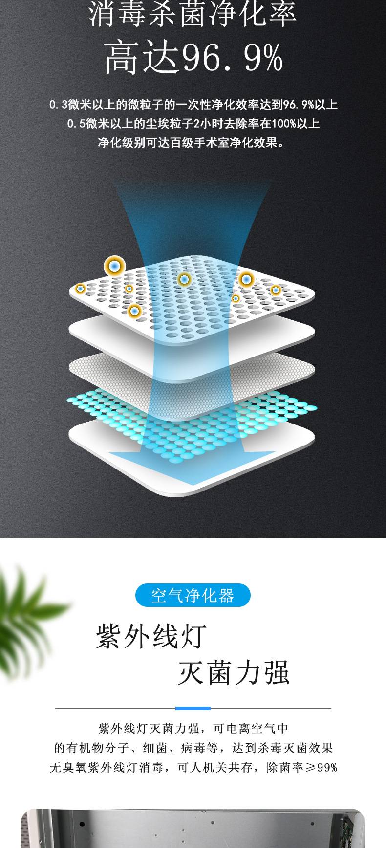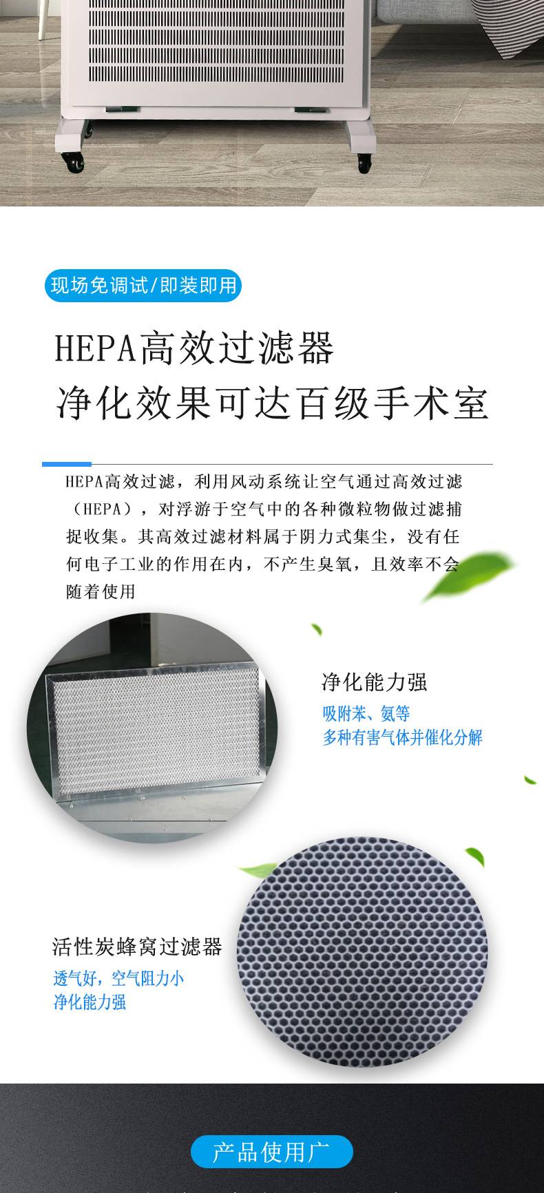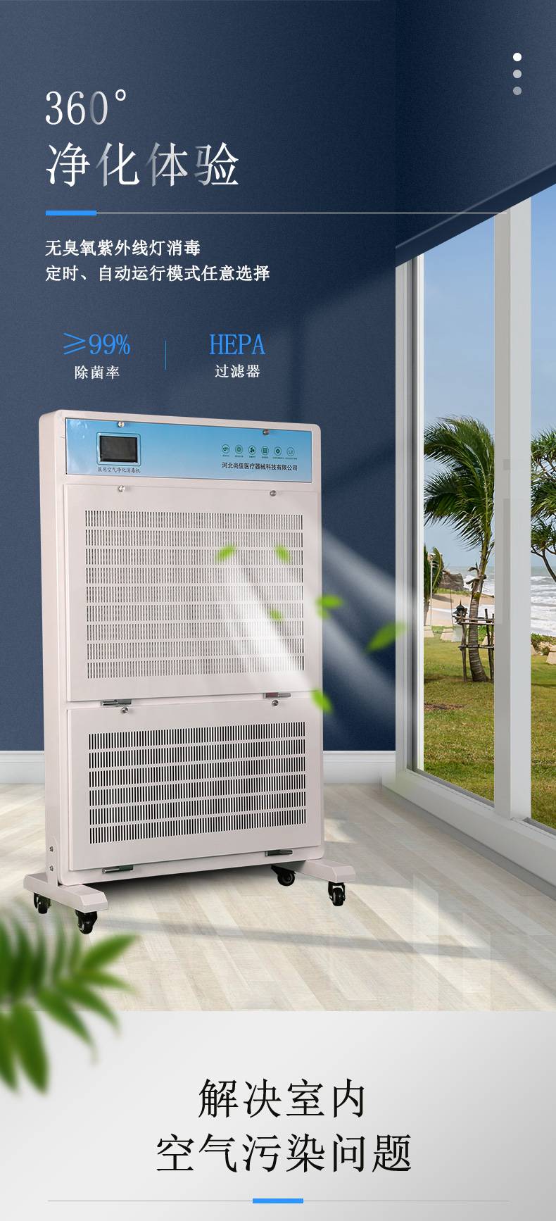 移动式空气净化器HEPA空气净化消毒机尘埃粒子去除器