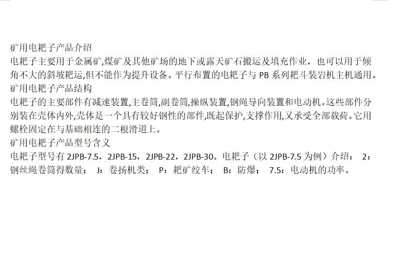 矿用电耙子整机结构紧凑 减速器主副卷筒配置合理耐用