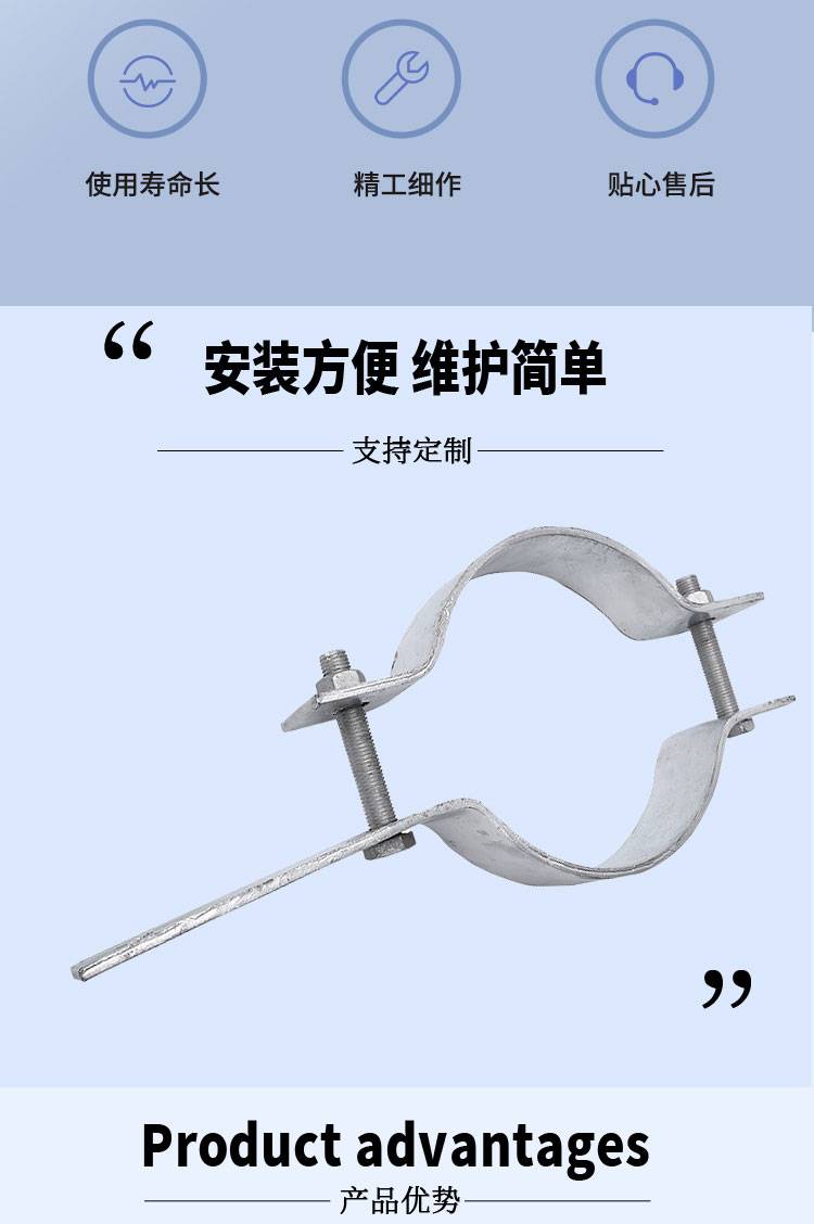 横担电力单长尾抱箍金具 直线单顶抱箍 通信热镀锌铁附件