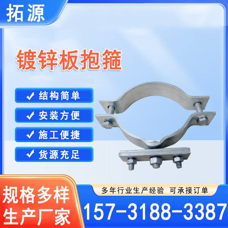 电力工程用镀锌单吊抱箍 拉线扁铁管道卡箍 拓源现货