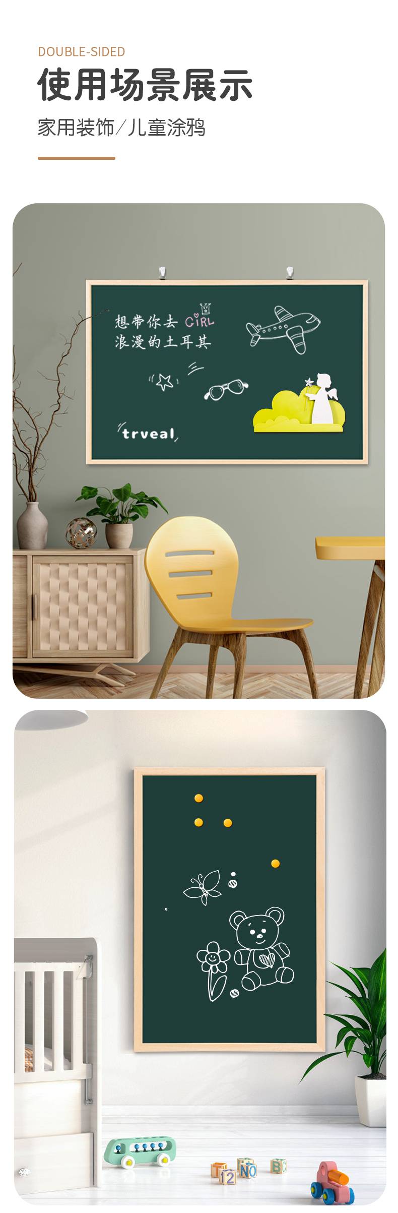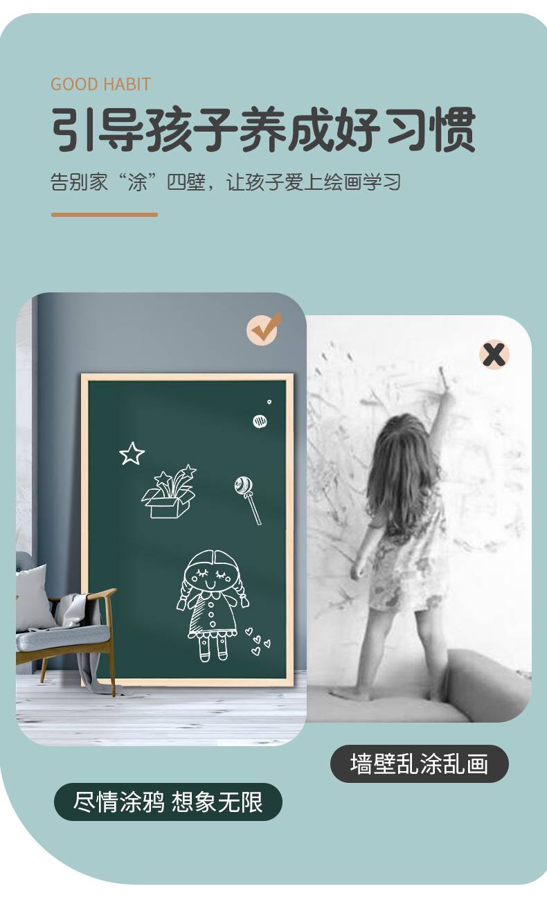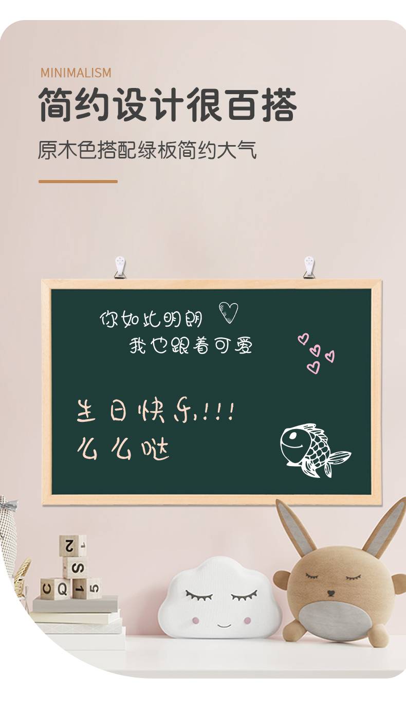 磁性绿板小黑板家用儿童教学画板挂式练粉笔写字板黑板商用广告牌留言板涂鸦白板可移除店铺用展示板挂墙可擦