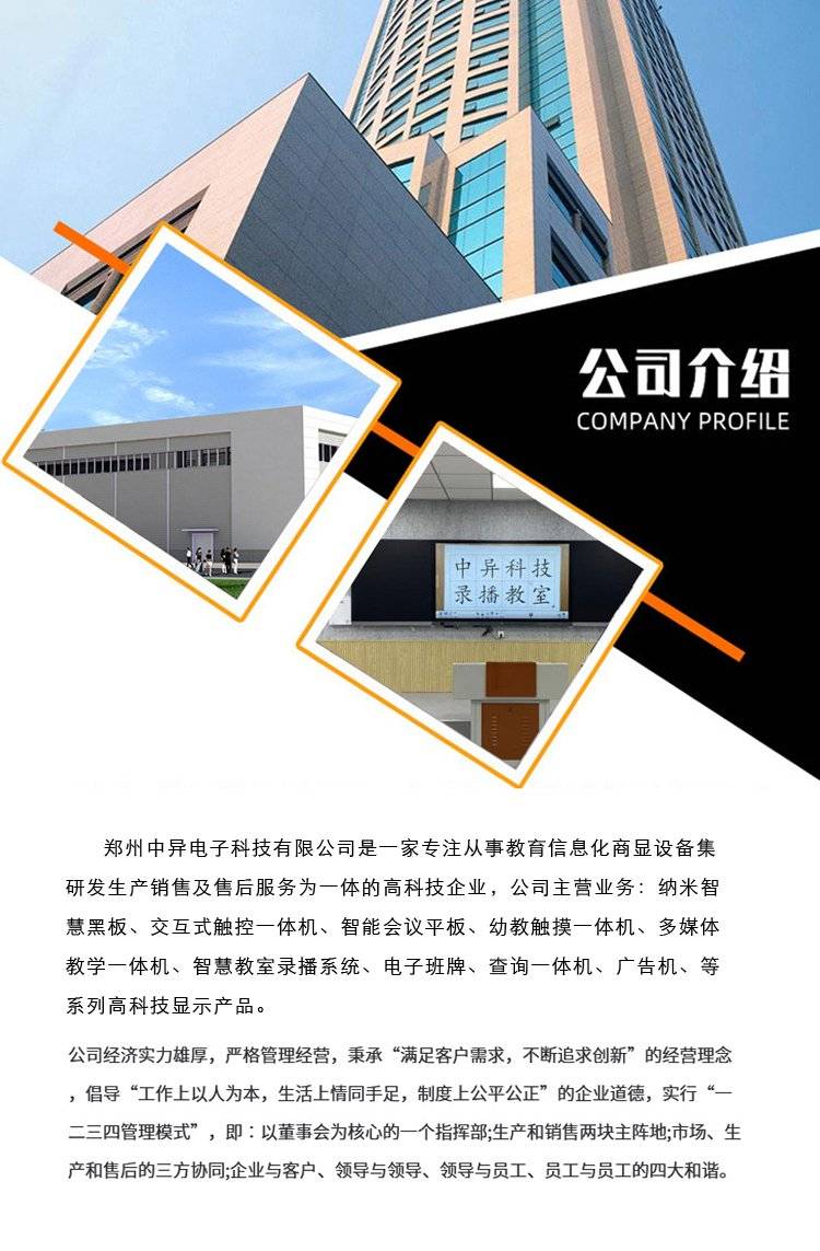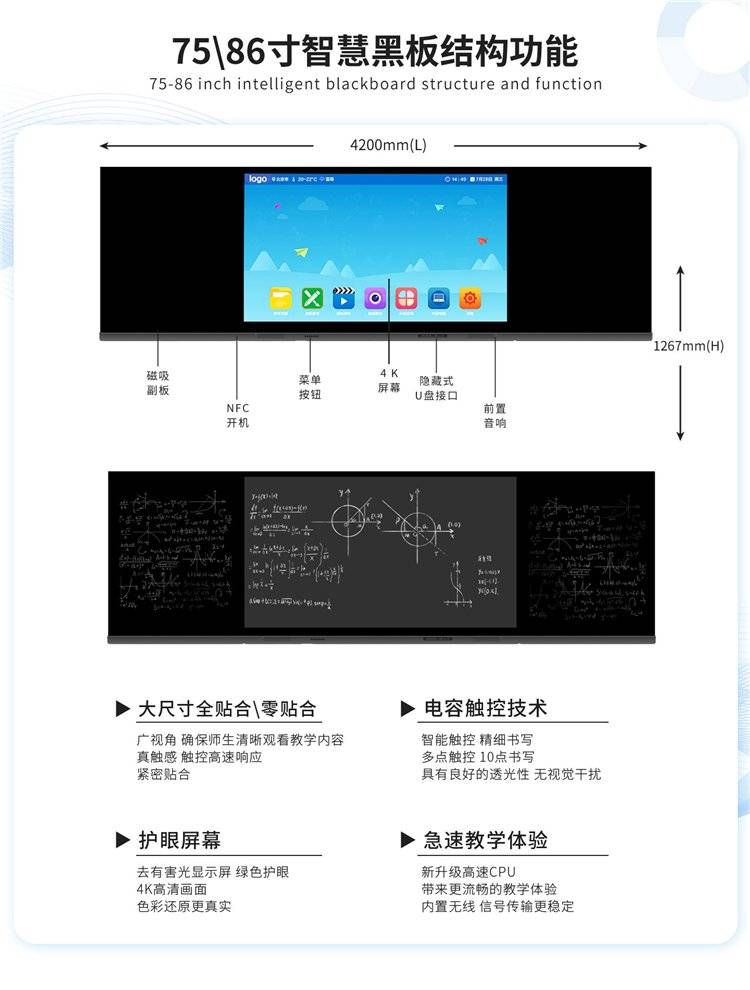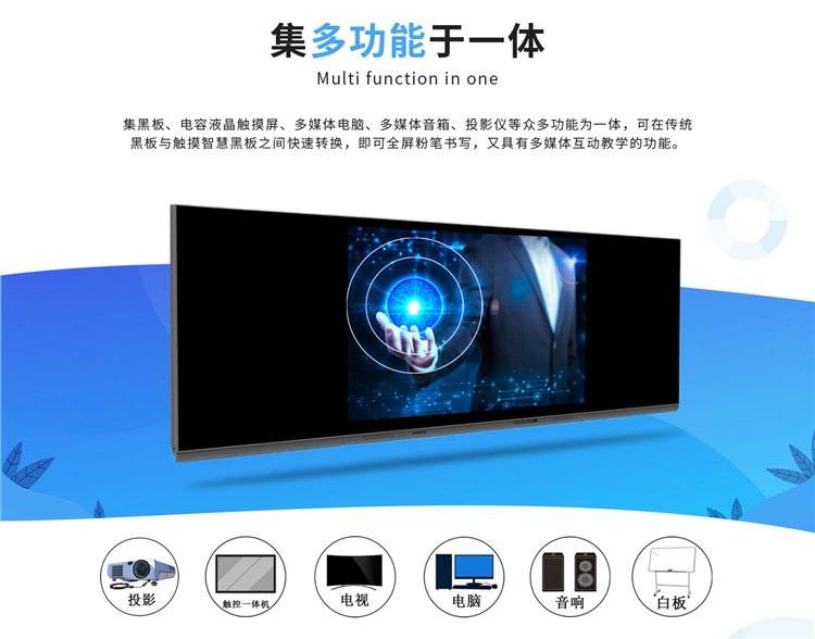 中异科技纳米智慧黑板75寸壁挂全贴合触控屏支持粉笔书写