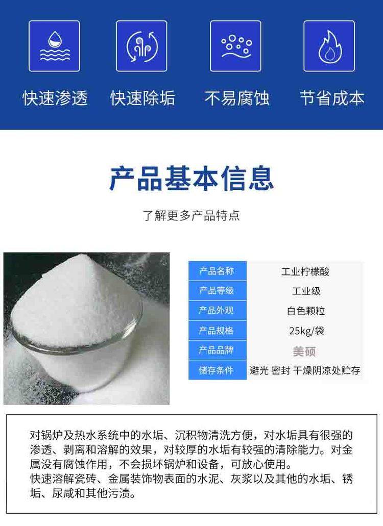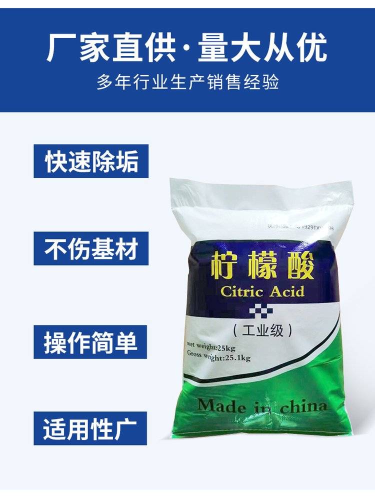2222一水柠檬酸工业级高含量 酸度调节剂 除锈高效清洗RO膜 全国发货