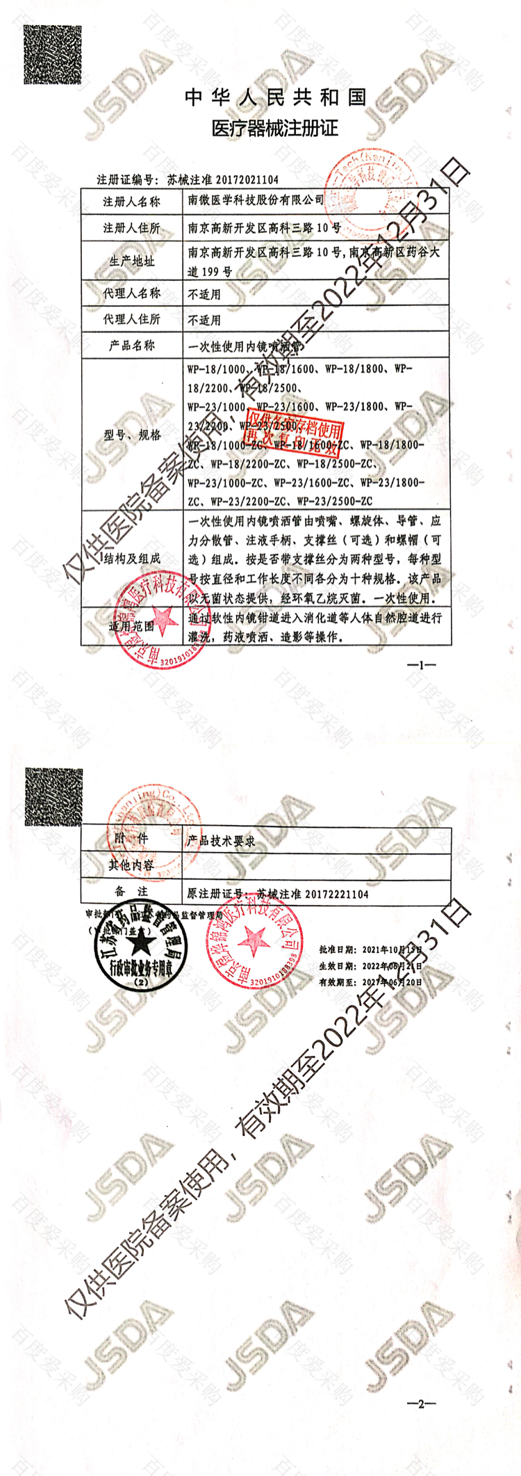一次性使用内镜喷洒管WP-18/2200南微胃肠镜耗材灌洗给药喷雾管