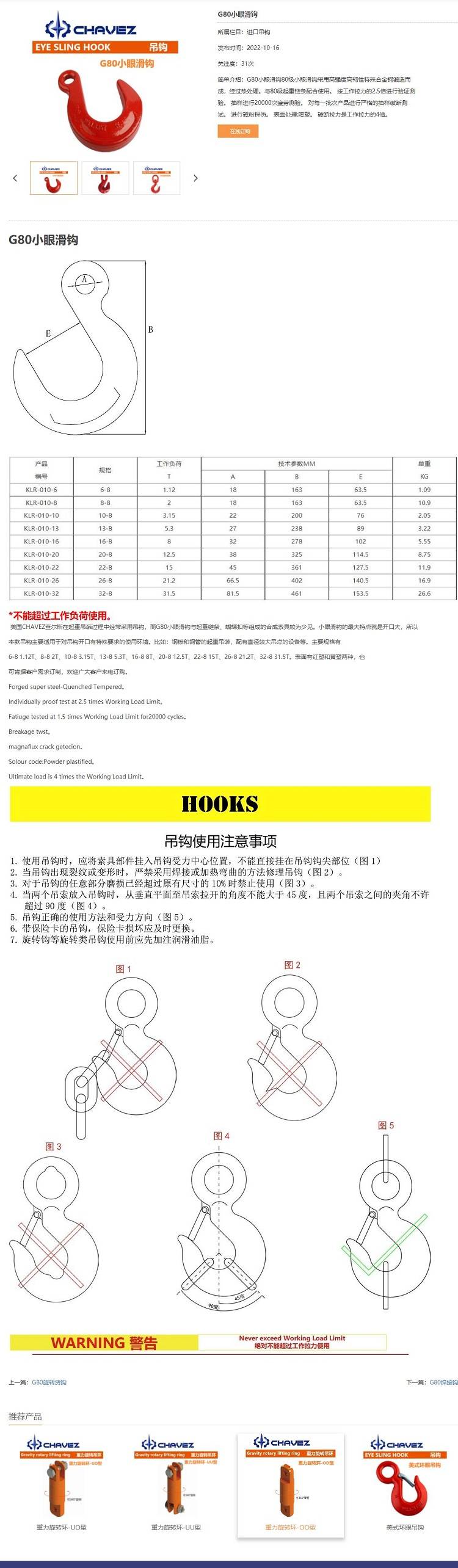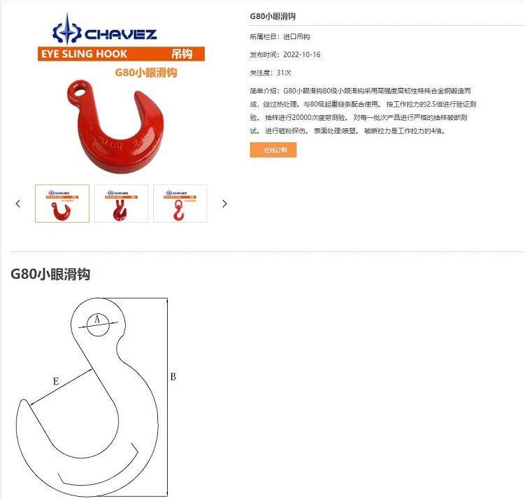 进口小眼滑钩 大开口欧式美式眼型吊钩 抓钩环眼吊装钩 矿山 起重吊具