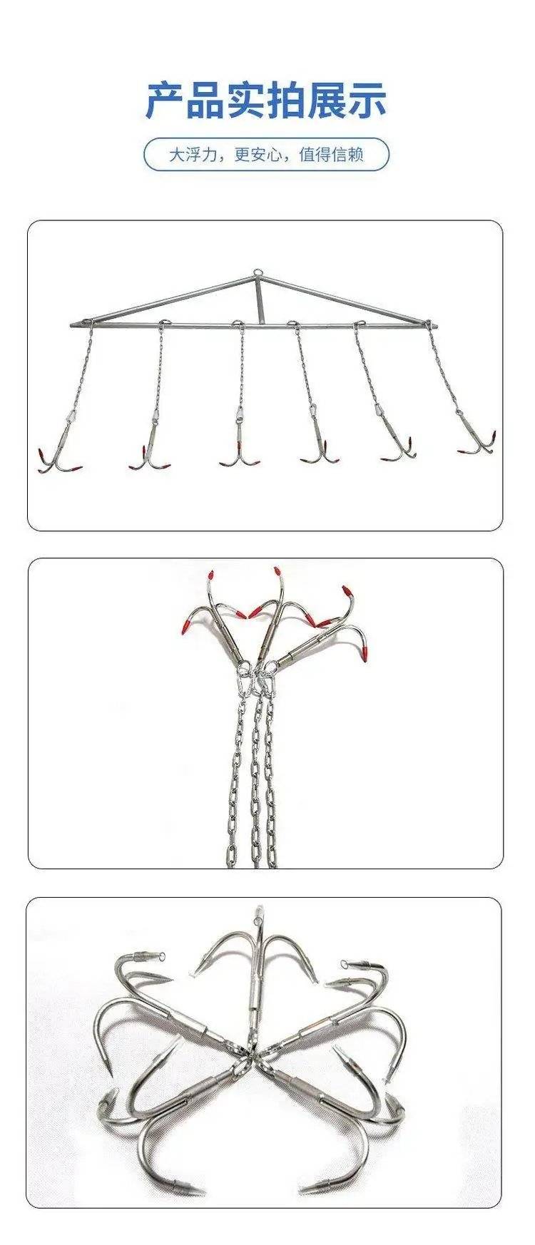 水域救援救生滚钩不锈钢折叠式打捞钩多用途水域搜救倒刺抓钩