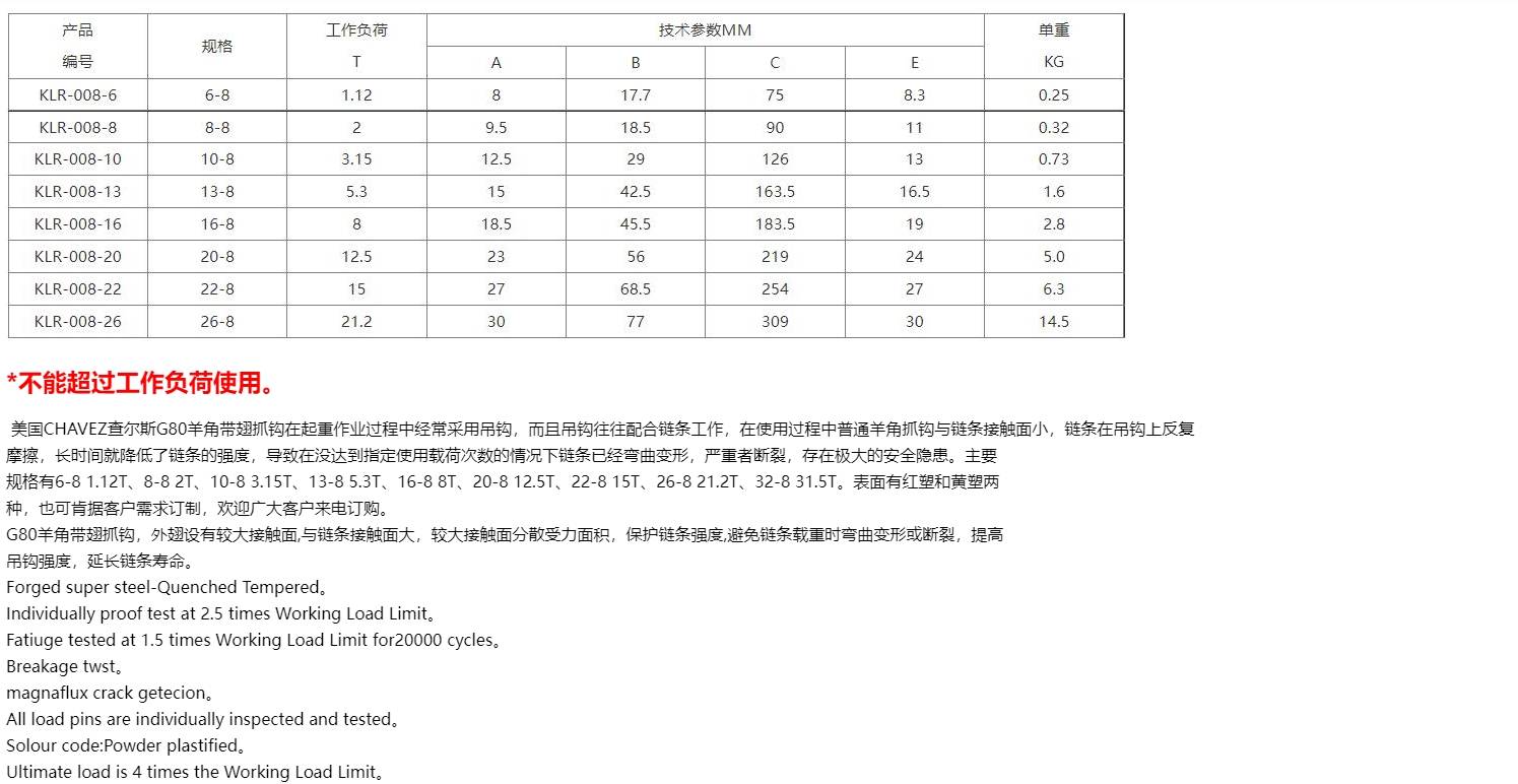 G80羊角带翅抓钩 安全钩高强度起重钩 安全自锁吊具牵引抓钩高使用