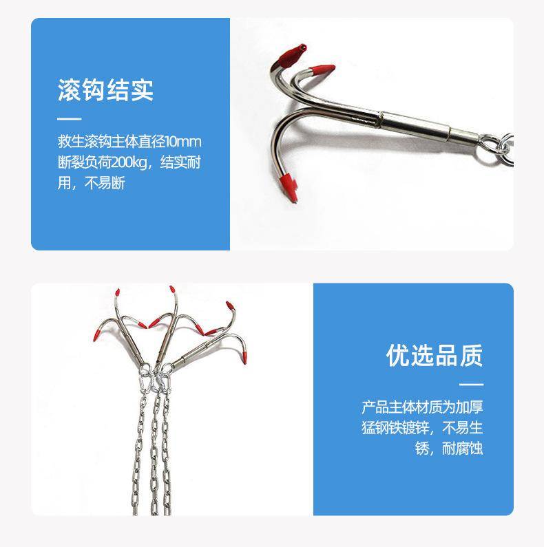 水域救援打捞救生滚钩防汛水下清理三爪钩溺水者搜救倒刺抓钩