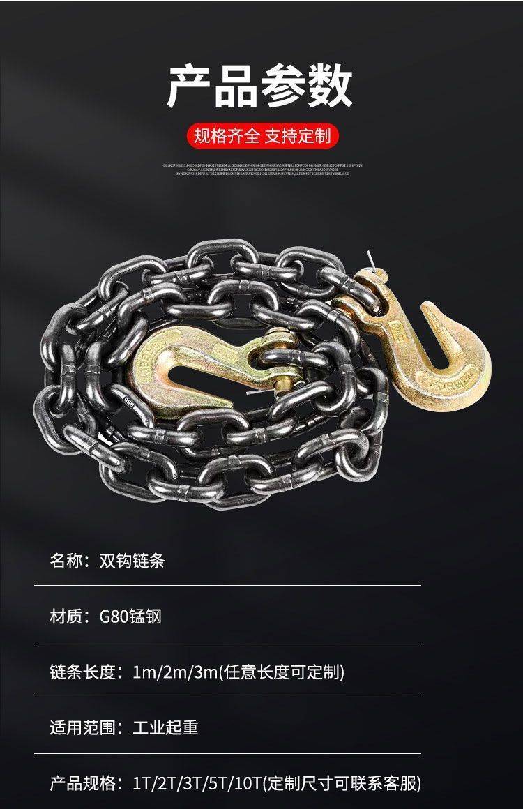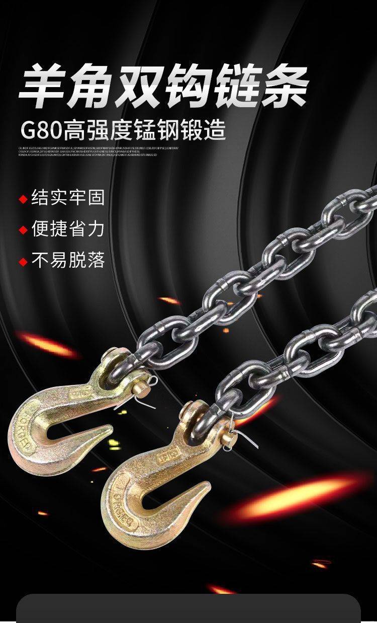起重链条双钩羊角抓钩锰钢链条铁链条吊石材钩捆绑链
