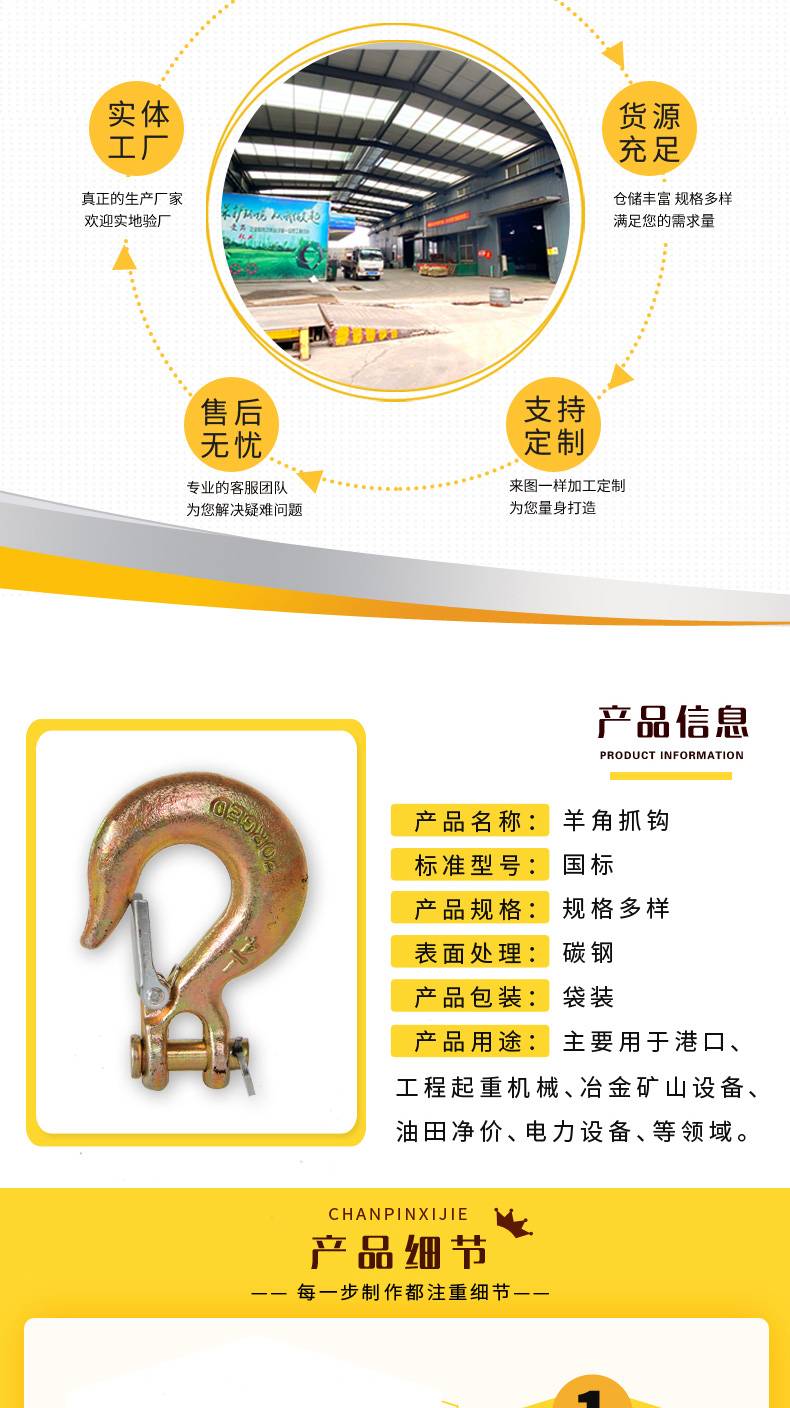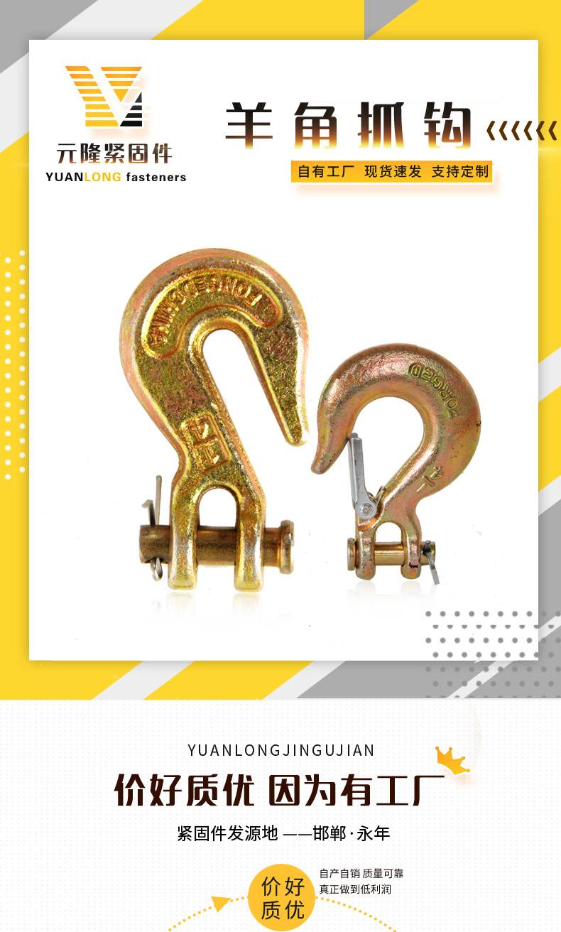 羊角抓钩 镀彩锌 带舌片吊钩 起重吊运钩 元隆紧固件定制加工
