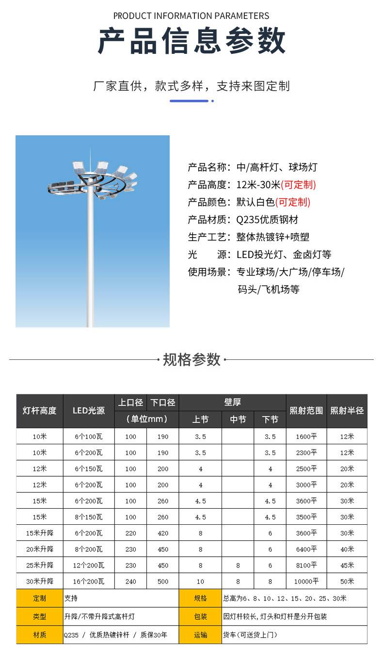 升降式高杆灯 25米体育场篮球场LED高杆路灯 来图按需定制