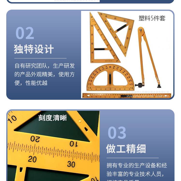 中小学数学教学仪器三角板圆规直尺教学演示用多规格文具塑料格尺