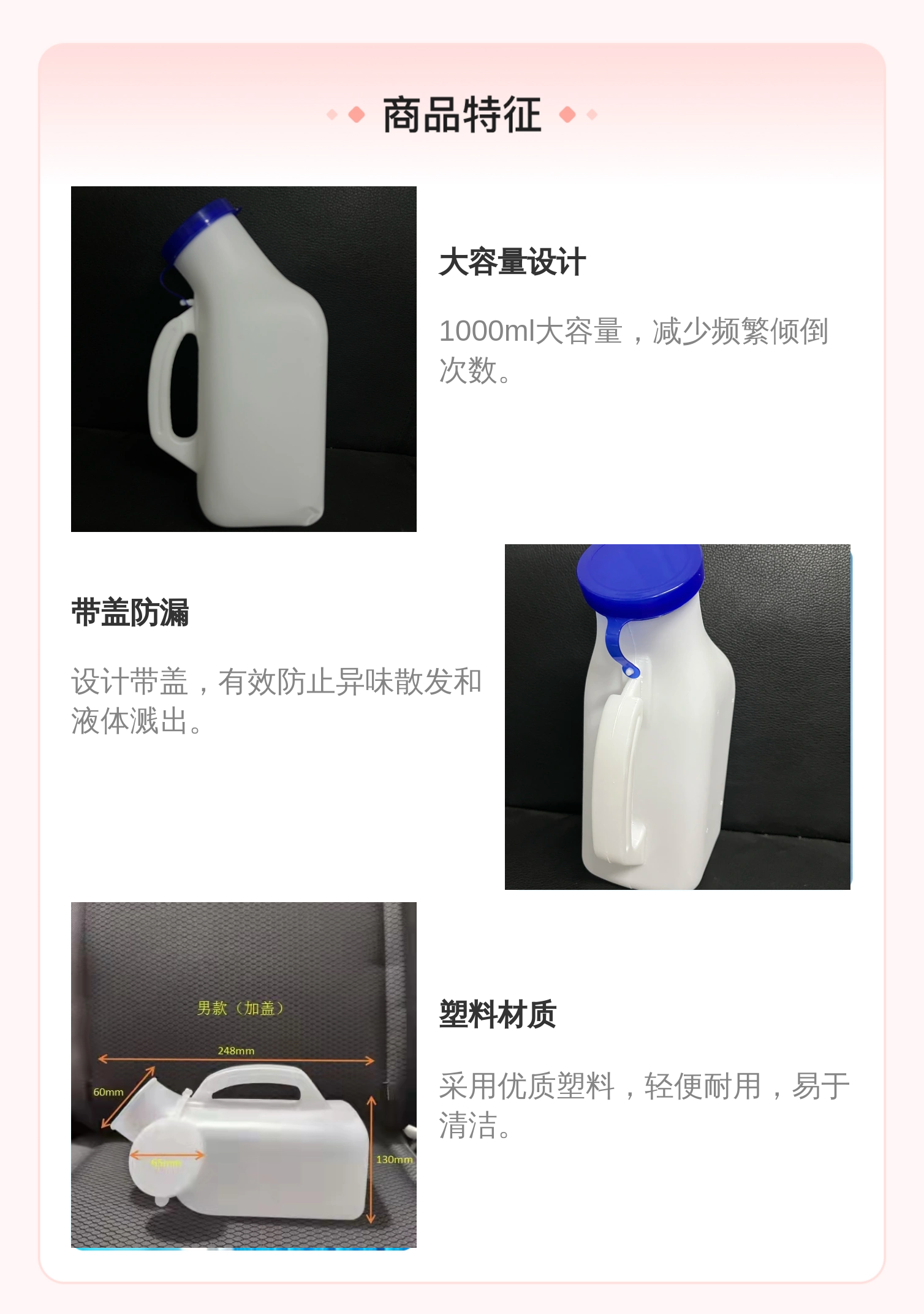 老人家用带盖小便器 男女医院用尿壶 塑料小便壶夜壶 1000ML