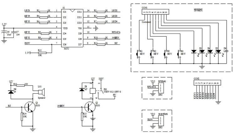 ①(KEY1)开关键:短按开关机,开机默认定时45分钟。上电不工作,短按一下蜂鸣器响10秒钟停止,延时30秒后(相对应指示灯闪40秒,1HZ/秒 蜂鸣器10秒+延时30秒)消毒灯开始工作,45分钟后停止,时间到自动关闭。