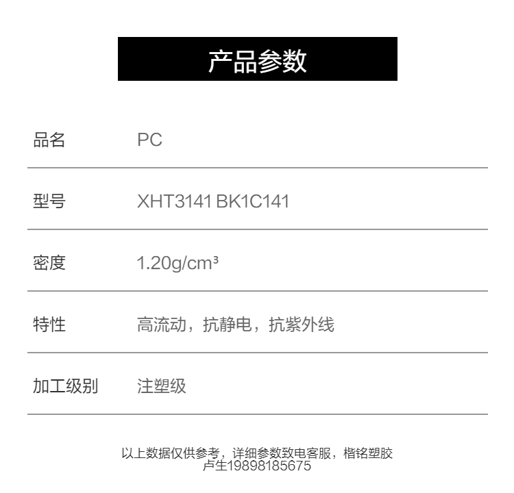 PC 基础创新塑料(美国) XHT3141 BK1C141 抗UV 耐热 电器 体育器材 注塑级