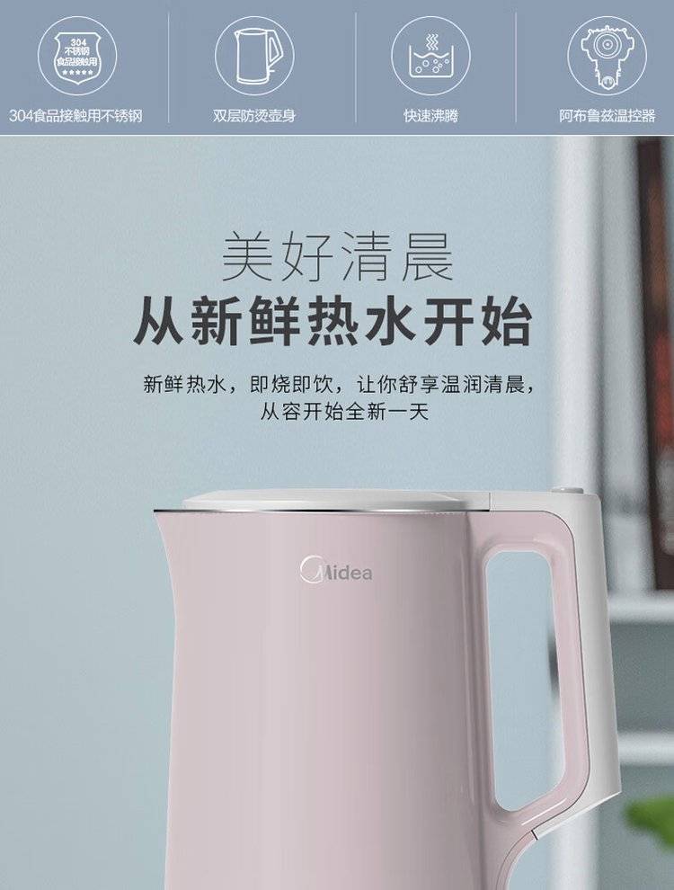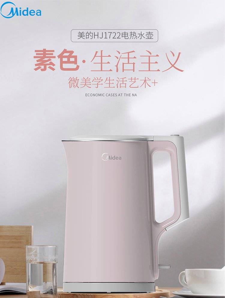 美的 电水壶 MK-HJ1722 1.7L大容量自动断电烧水壶办公家用电热水壶