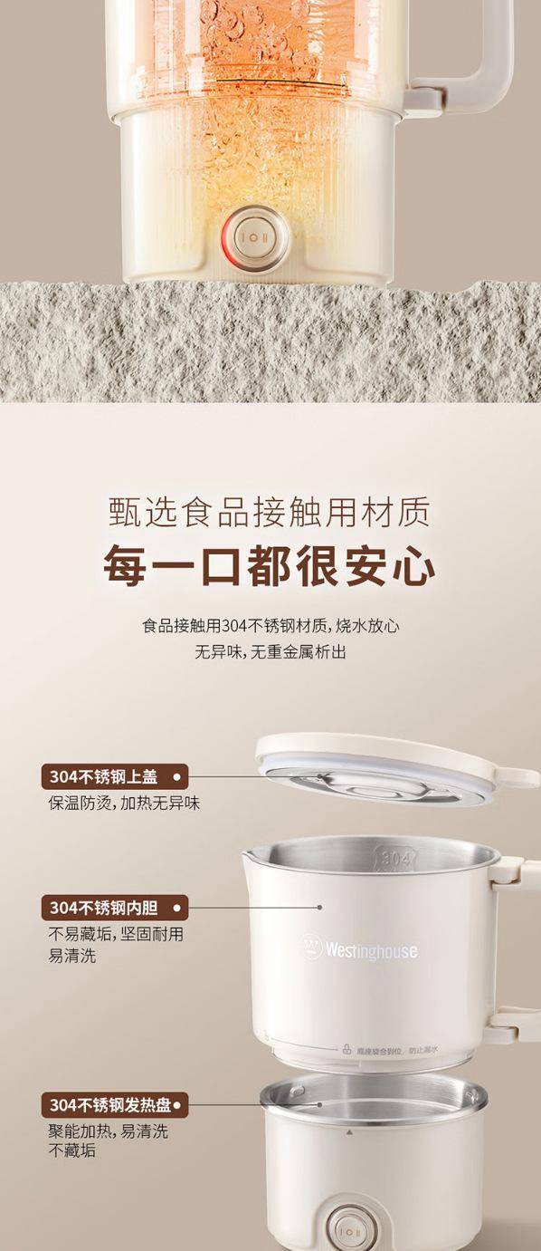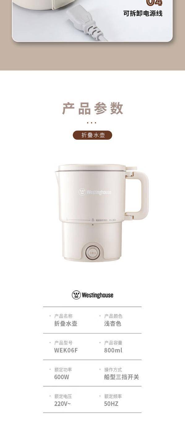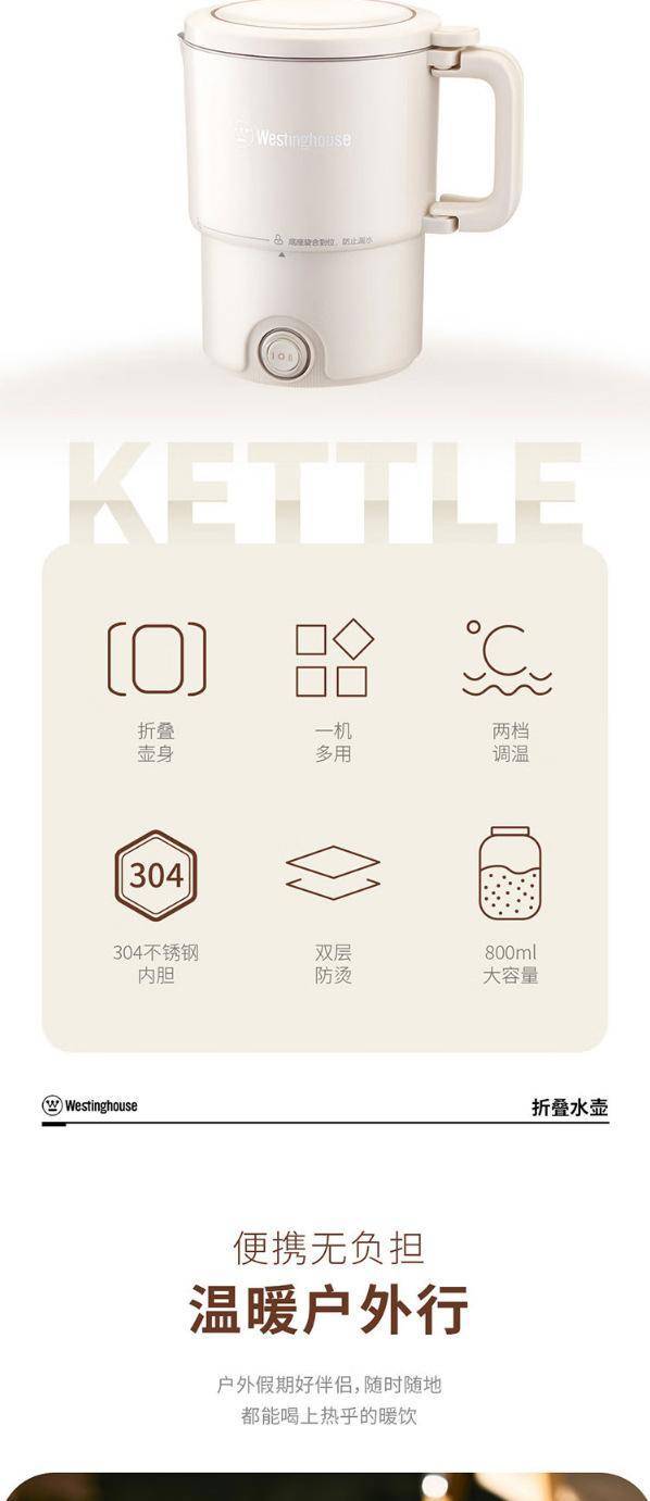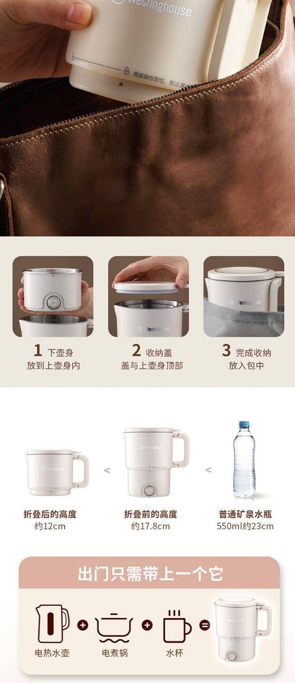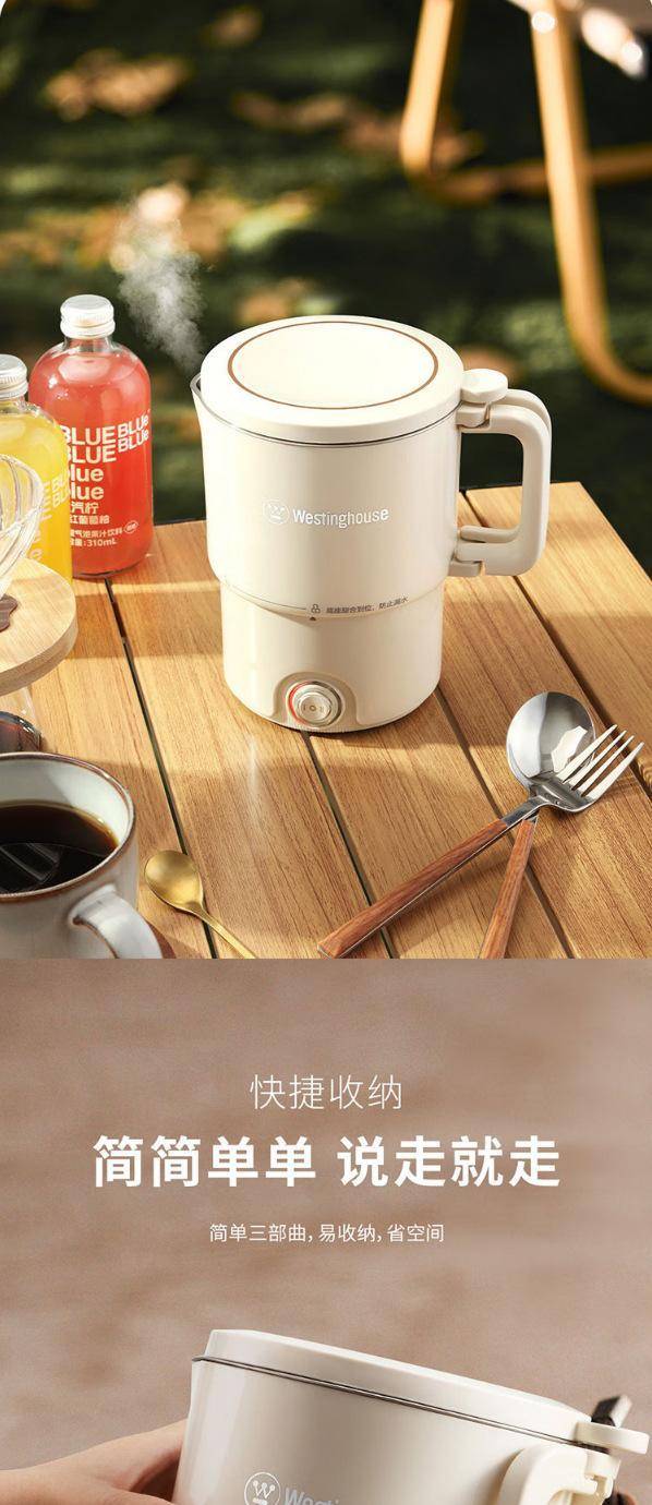 西屋便携式烧水壶折叠电水壶WEK06F 不锈钢烧水杯多功能电煮锅