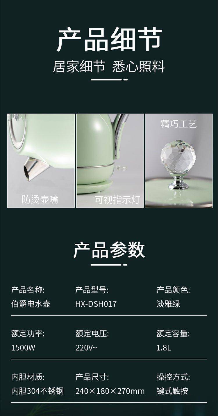 火象家庭实用伯爵电水壶1.8L大容量烧水壶DSH017