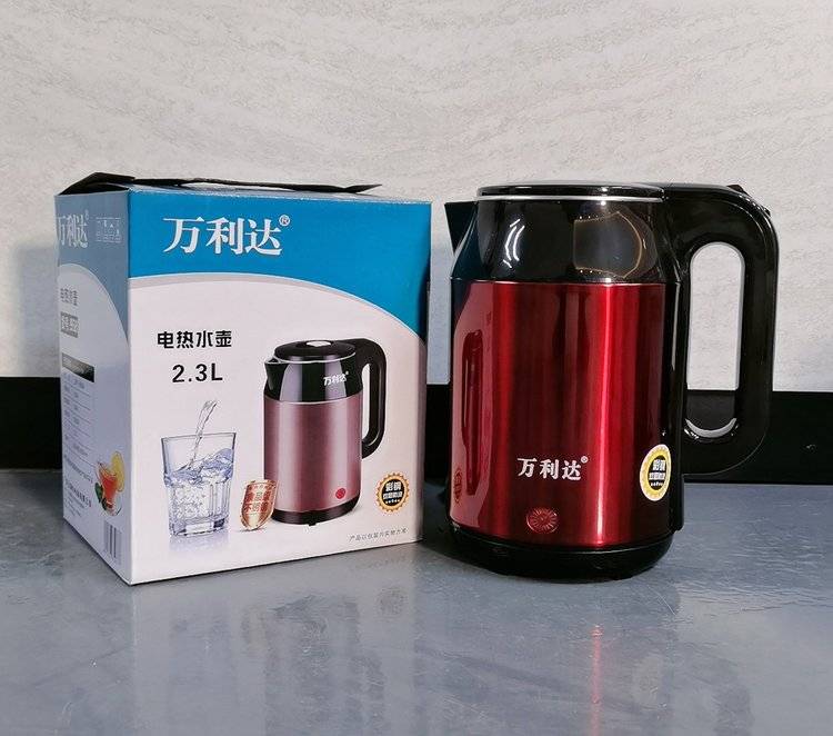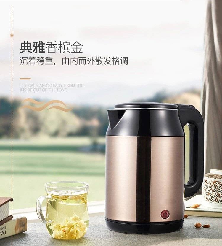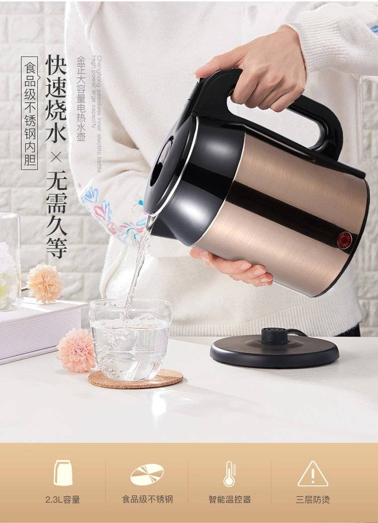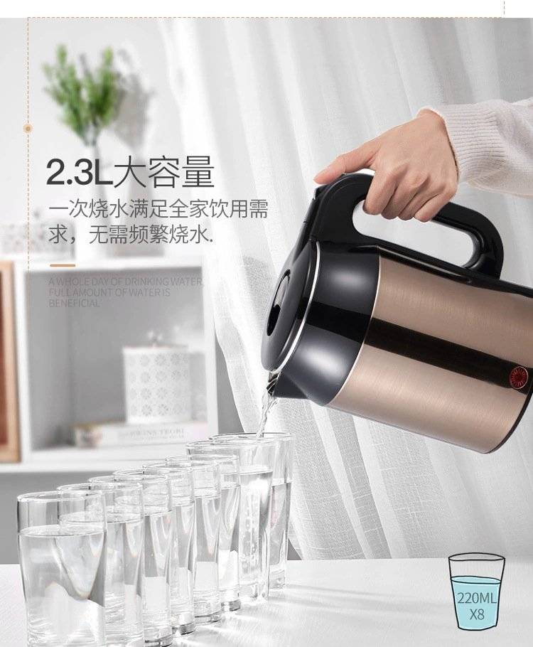 2.3L彩钢家用快速壶 双层不锈钢防烫电热水壶 大容量电水壶