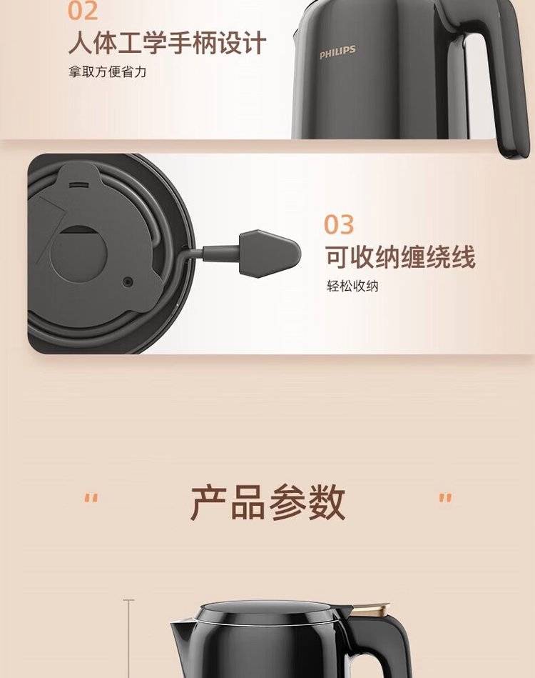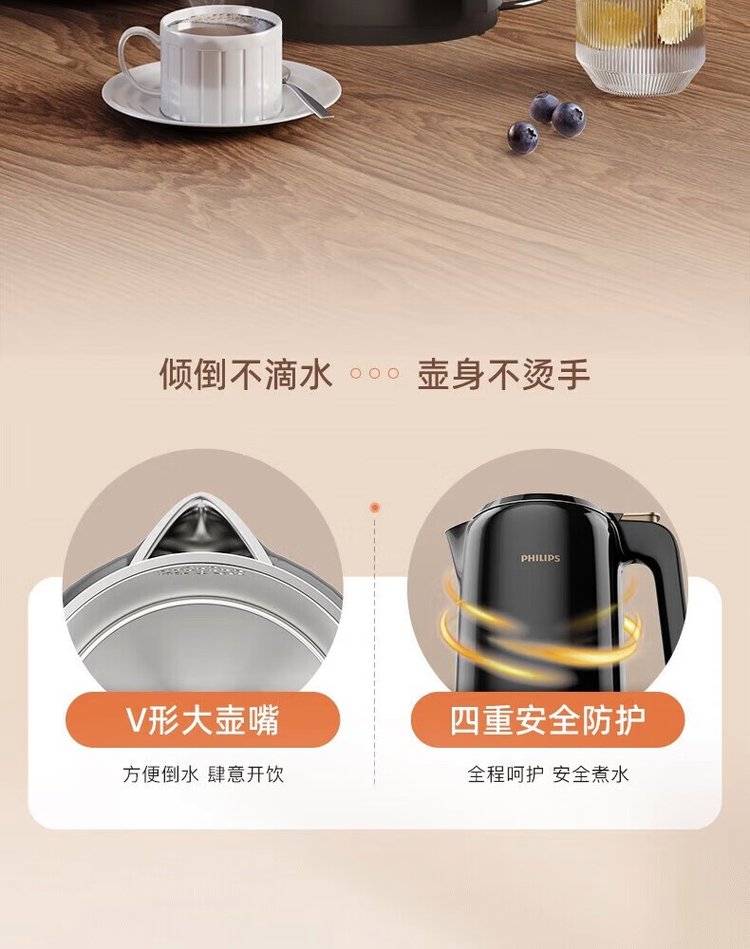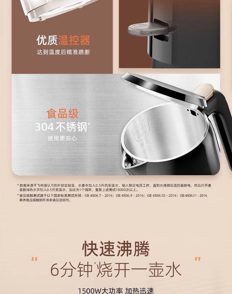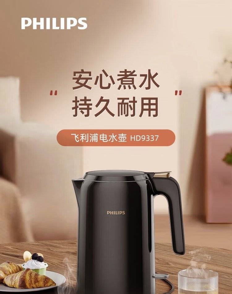 飞利浦电水壶HD9337/80 304不锈钢烧水壶 1.5L家用电热水壶