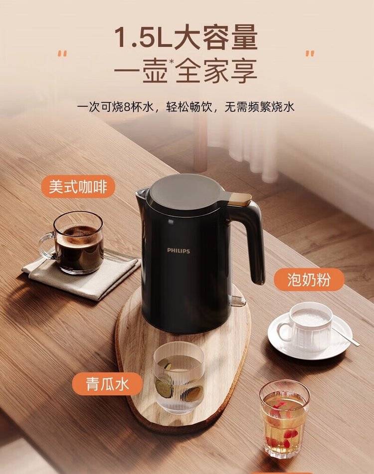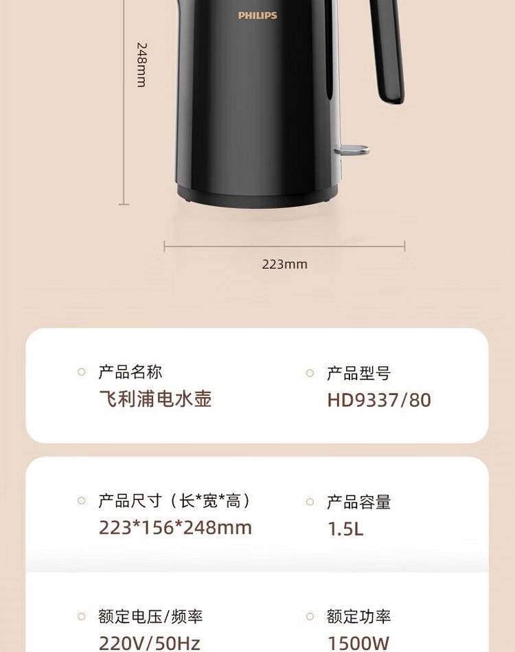 飞利浦电水壶HD9337/80 304不锈钢烧水壶 1.5L家用电热水壶