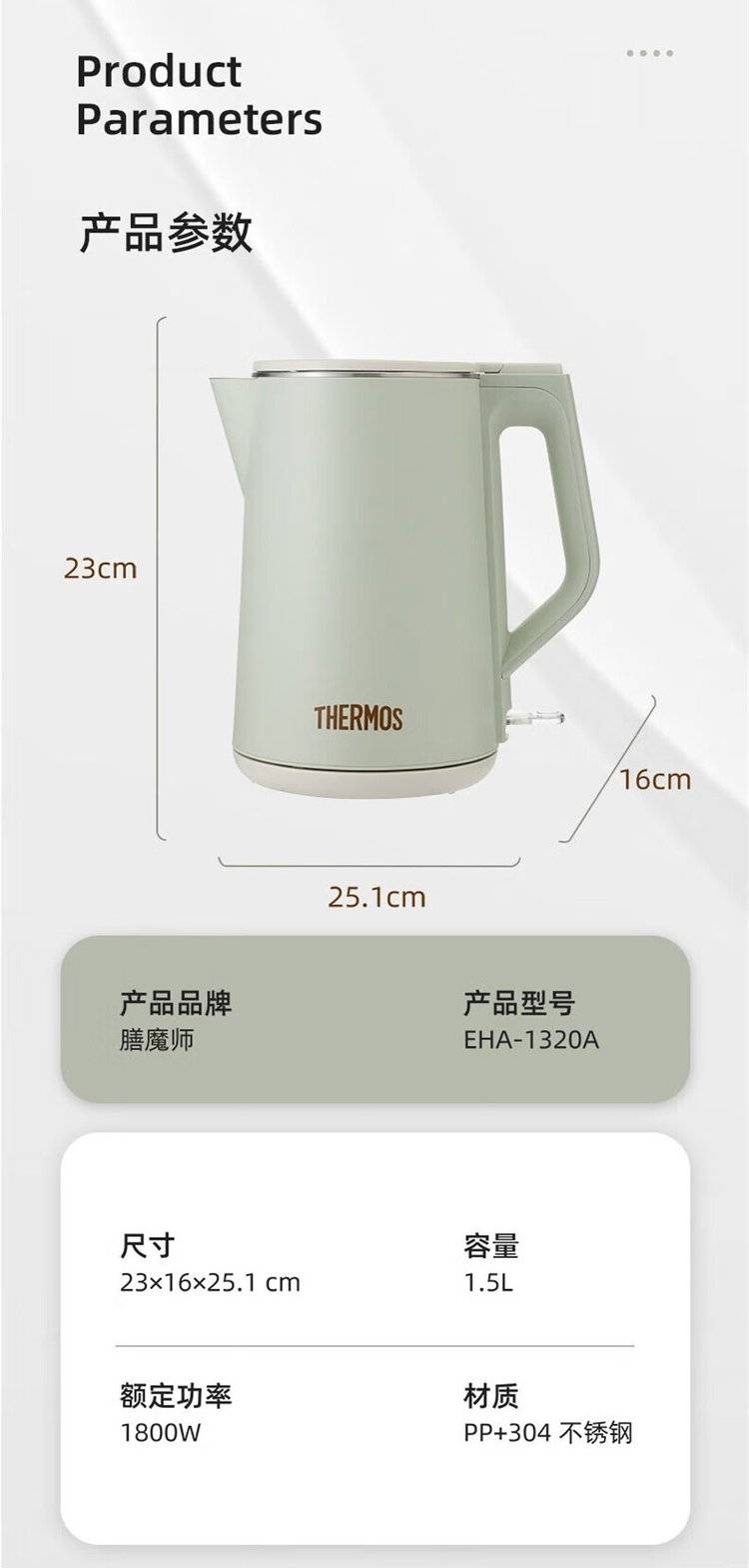 THERMOS膳魔师电水壶 EHA-1320A 不锈钢电烧水壶 1.5升容量
