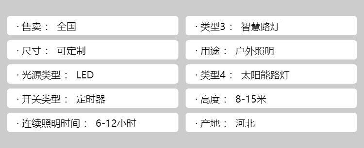 太阳能LED路灯户外庭院灯8-15米高6-12小时照明