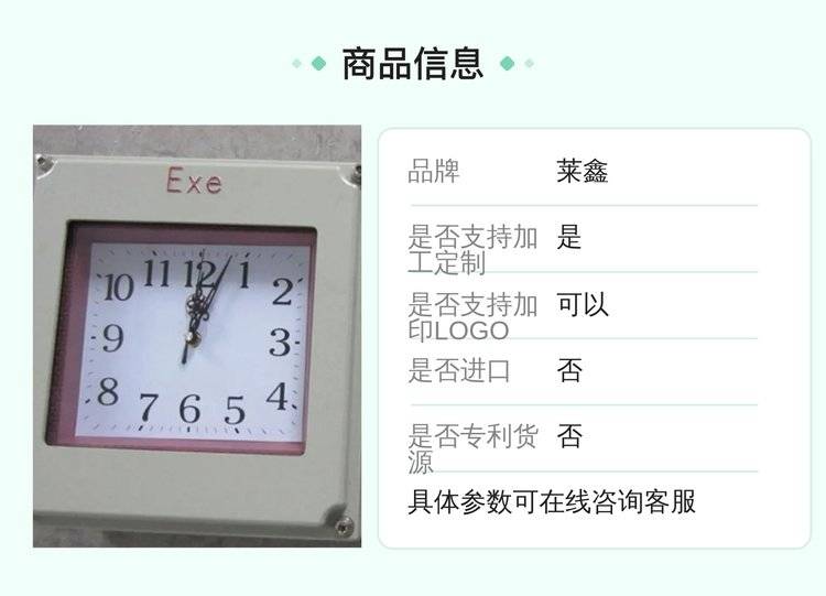 全本质安全型防爆, 壁挂式, 走时准确可靠, 造型美