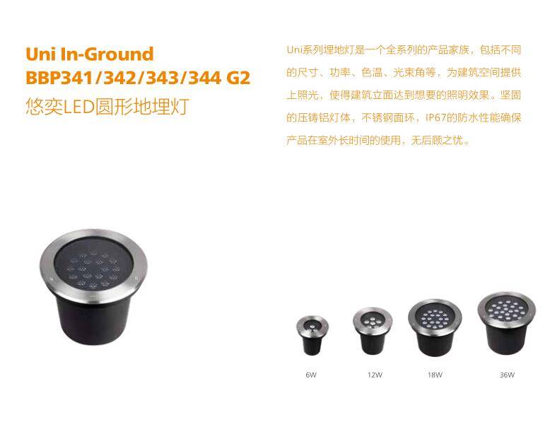 飞利浦6W12W18W36W LED圆形地埋灯BBP341/342/343/344 G2 IP67防水