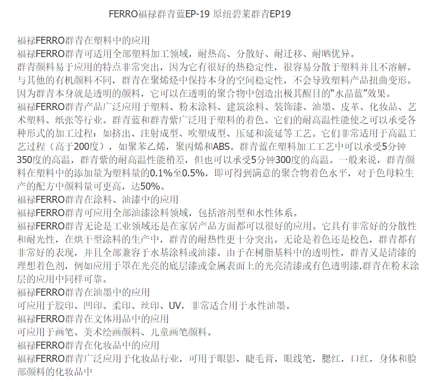 纽碧莱颜料EP19福禄耐高温耐迁移群青蓝EP-19 CP58