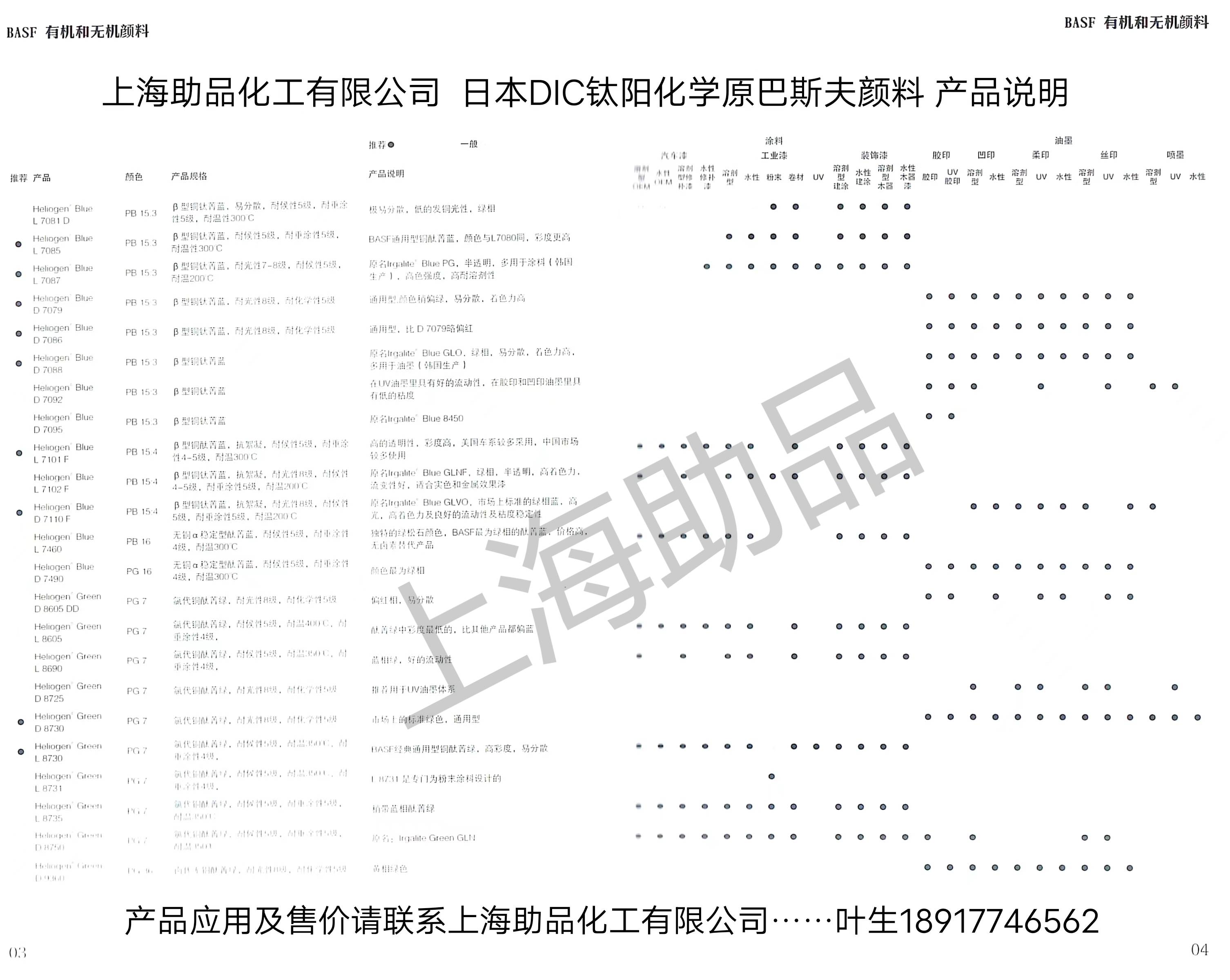 巴斯夫奥利素颜料Heliogen