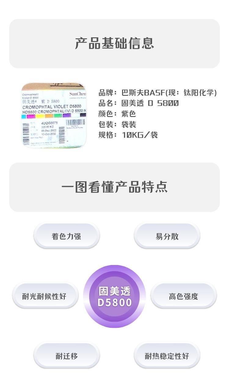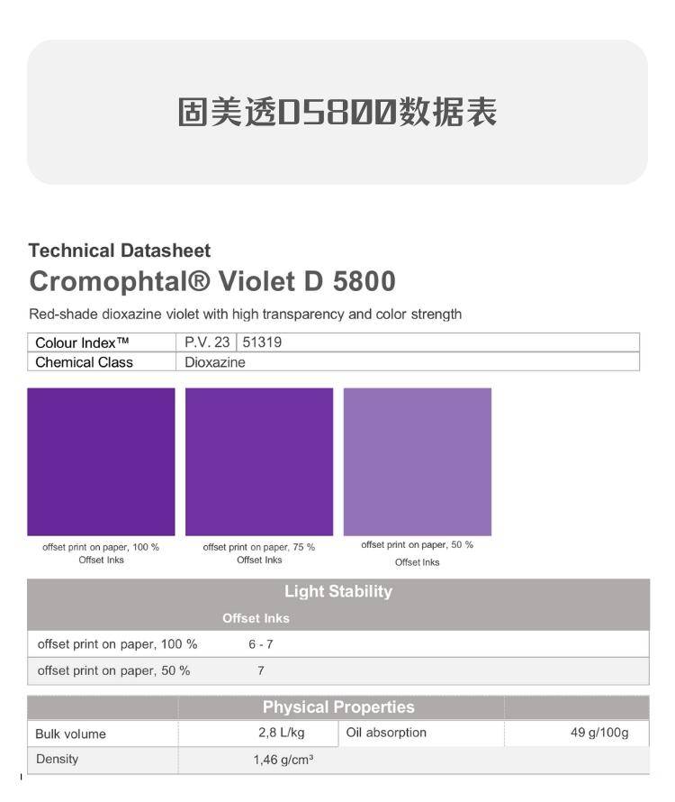巴斯夫高透明有机颜料 固美透紫色D5800 BASF颜料紫23