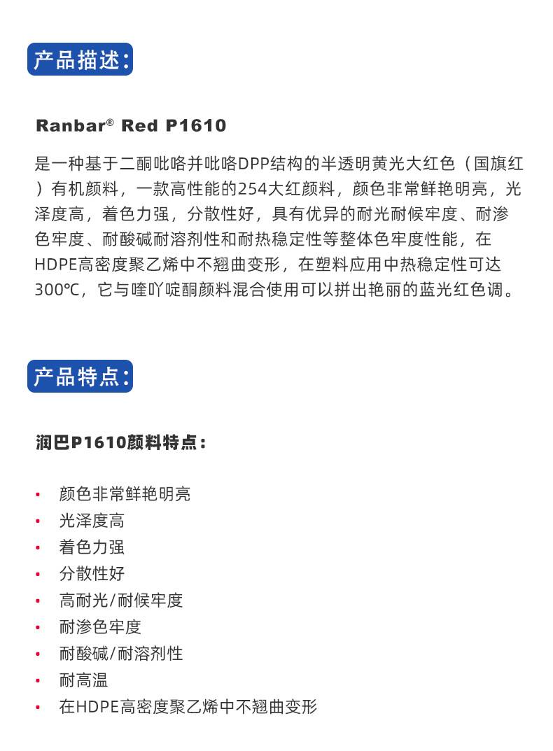 润巴P1610高性能大红颜料通用型有机颜料国旗红颜料颜料红254